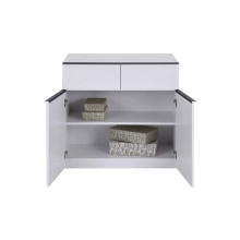 Комод виконаний в сучасному стилі модерн, що поєднує простоту і елегантність. Білий глянець спільно з антрацитом матовим кольором надає йому сучасний і стильний вигляд. Цей комбінований колір відмирає його від інших меблів і робить його центром уваги в приміщенні.