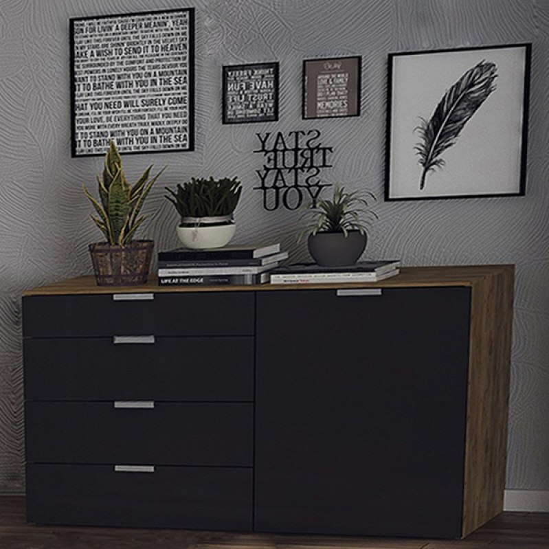 Комод місяць 1дв4шх MiroMark-висотою 880 мм і глибиною 431 мм – це функціональний і стильний елемент меблів, який стане відмінним доповненням до будь-якого інтер'єру. Він має одну дверцята і чотири ящики, що дозволяють зручно зберігати різні предмети.