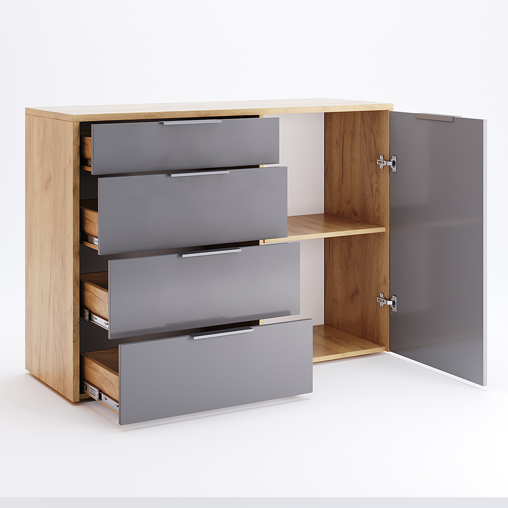 Комод доступний в кольорі "Дуб Крафт-Мат Лава", що надає йому сучасний вигляд. Виробництво здійснюється в Україні і використовуються високоякісні матеріали, що гарантують якість меблів.