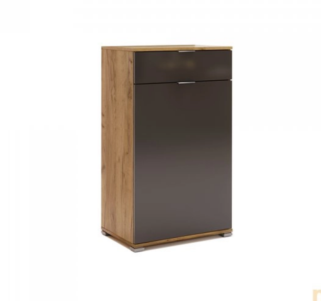 Дно ящика виготовлено з ДСП, що забезпечує стійкість і довговічність конструкції. Крім того, цей комод оснащений додатковою фурнітурою, яка включає алюмінієву профільну ручку для зручного відкривання і закриття дверей, пластмасову ніжку, покриту сатином, що надає естетичний вигляд і узгоджується з ручкою.