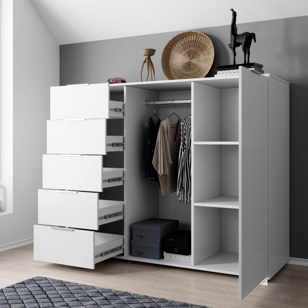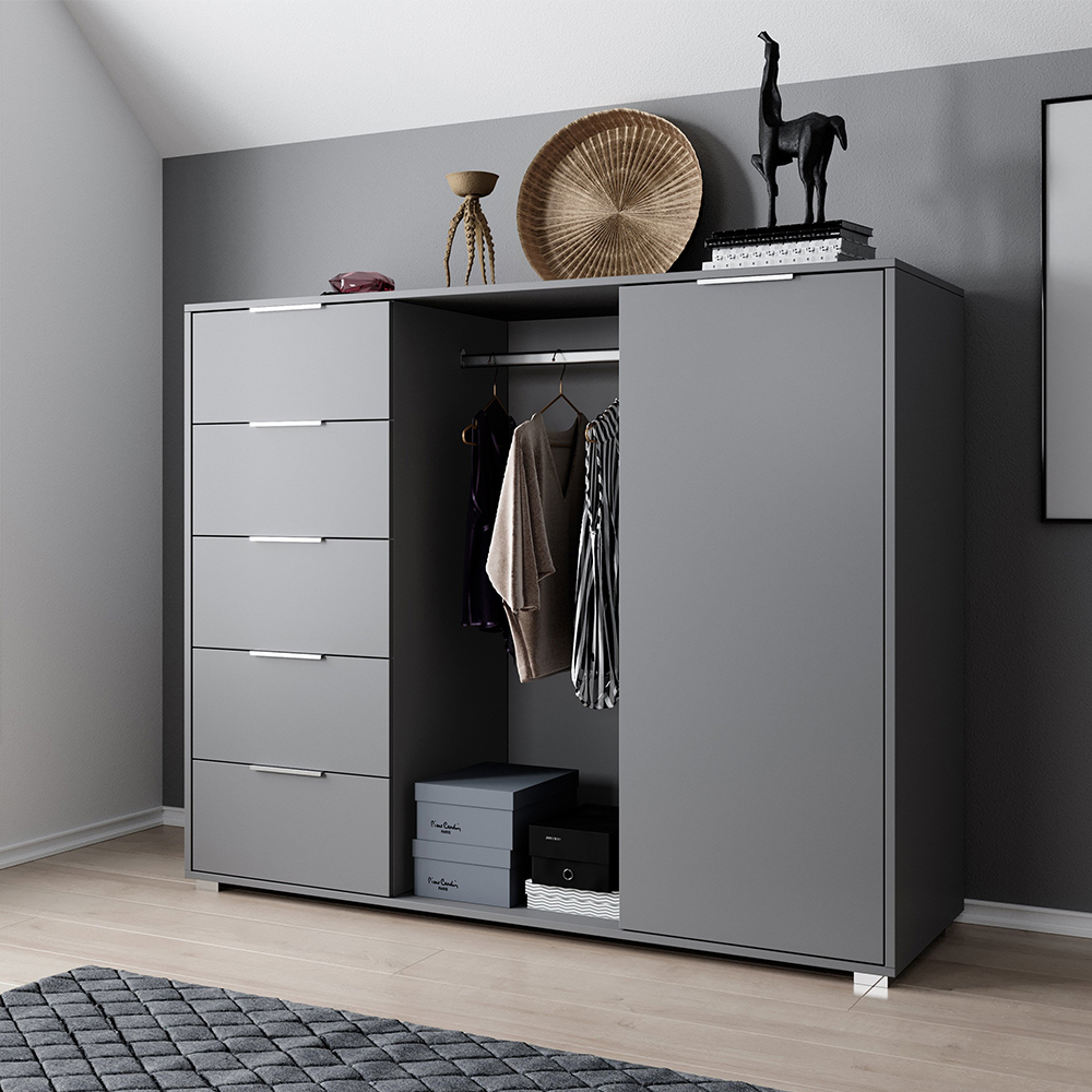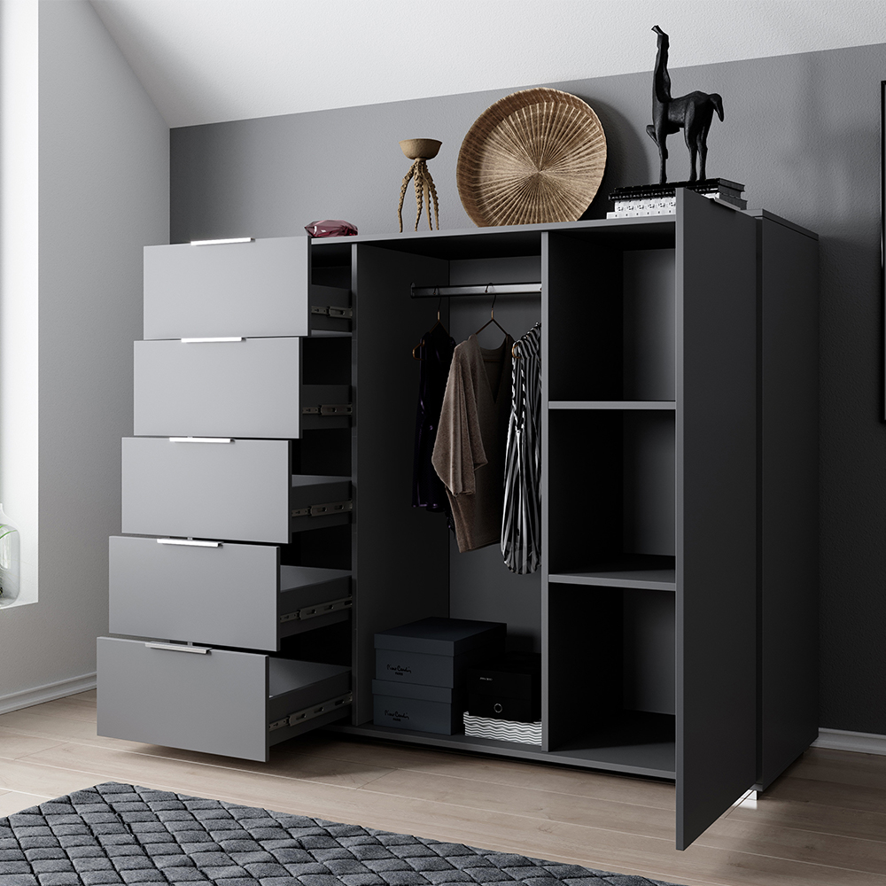 Комод оснащений одними дверцятами і п'ятьма ящиками, що надає йому достатньо місця для зберігання різних речей. Якість дверцят і ящиків забезпечується використанням телескопічних направляючих, що забезпечують легке і плавне відкривання і закривання.