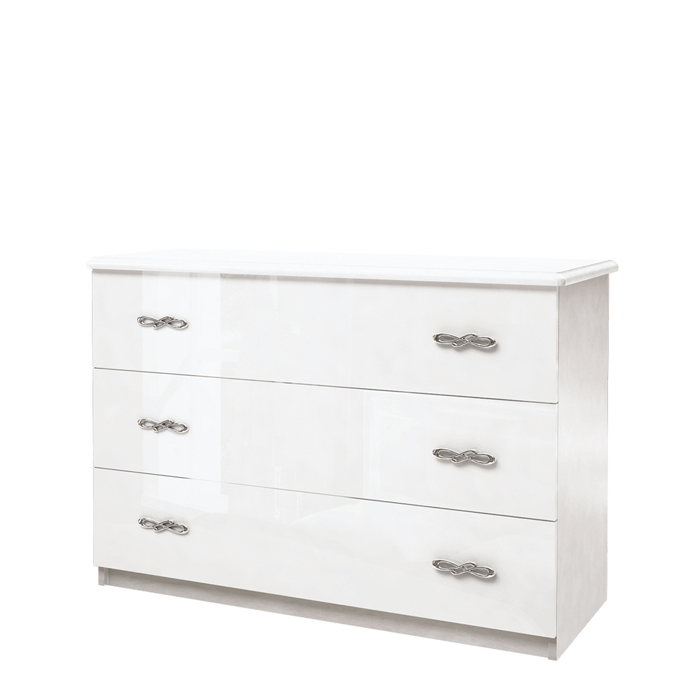 Цей комод має білий глянсовий колір, який додає світла та простору будь-якій кімнаті. Він також виготовлений в Україні, що гарантує високу якість і дбайливе ставлення до деталей.