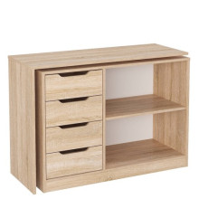 Матеріал: цей комод виготовлений з високоякісного ламінованого ДСП, яке забезпечує міцність і довговічність меблів. Воно також легко доглядається, оскільки ламінована поверхня не вимагає особливих зусиль для очищення.