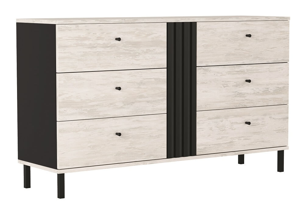 Комод Тео складається із шести висувних ящиків, що робить його ідеальним для зберігання різноманітних предметів упорядковано та зручно. Велика кількість ящиків дозволяє розподілити речі за категоріями, що полегшує їх пошук та організацію.