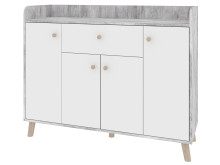 Комод до - 4 1 Ретро - ідеальне рішення для вашого інтер'єру. Матеріал корпусу комода-ДСП (деревостружкова плита) товщиною 16 мм, що надає йому міцність і стійкість. Кромка з ПВХ товщиною 0,45 мм додає додаткову міцність і захист від вологи, роблячи його довговічним.