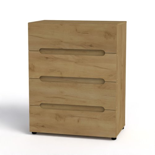 Матеріал ламінованого ДСП володіє численними перевагами. Він стійкий до подряпин, вологи та інших зовнішніх впливів, що робить його ідеальним для меблів, що піддається активному використанню. Легкість у догляді забезпечує тривале збереження оригінального вигляду комода.
