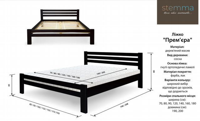 Її сучасний дизайн, Висока якість і практичні особливості зроблять ваш сон незабутнім. Замовте ліжко Stemma "Прем'єра" вже сьогодні і насолоджуйтеся чудовим комфортом і стилем!