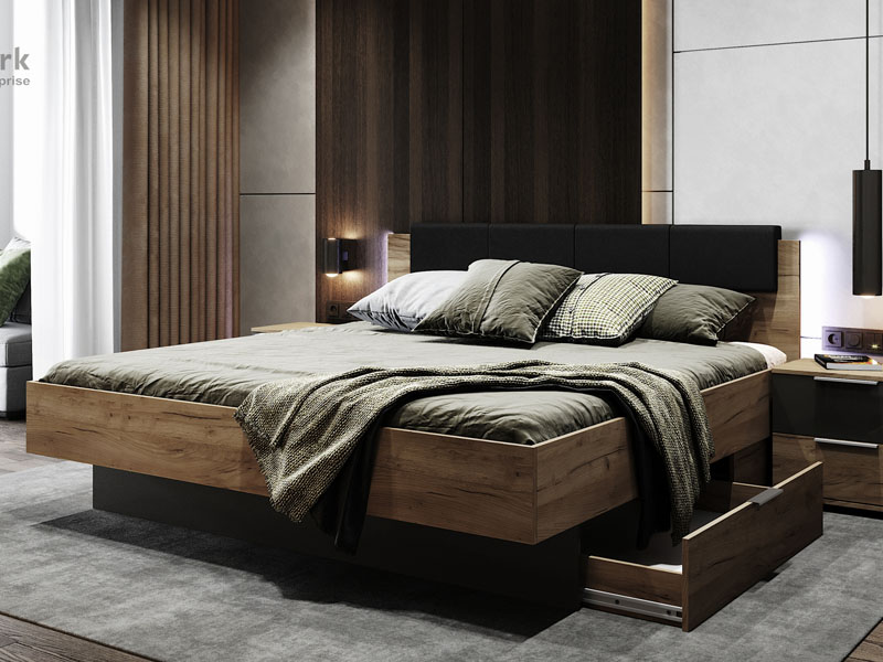 - Ліжко має висувні білизняні ящики, що забезпечують зручне зберігання речей і заощадять простір у вашій спальні.