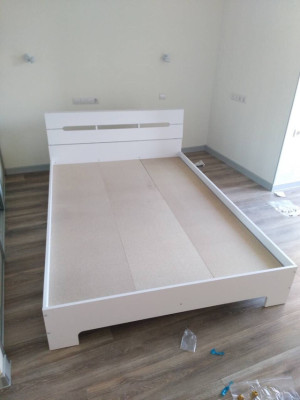 Загальні розміри ліжка становлять 766 мм висоти, 1644 мм ширини і 2133 мм глибини. Це дозволяє вам комфортно розташуватися на ній і отримувати якісний сон. Ліжко виготовлене з високоякісного ламінованого ДСП (деревопошукова плита), яке відрізняється міцністю і стійкістю до подряпин. Ви можете вибрати колір ДСП, який найкраще вписується у ваш інтер'єр. Варіанти квітів включають Бук, Венге, вільху, горіх, яблуню, Дуб соном і німфея Альба.