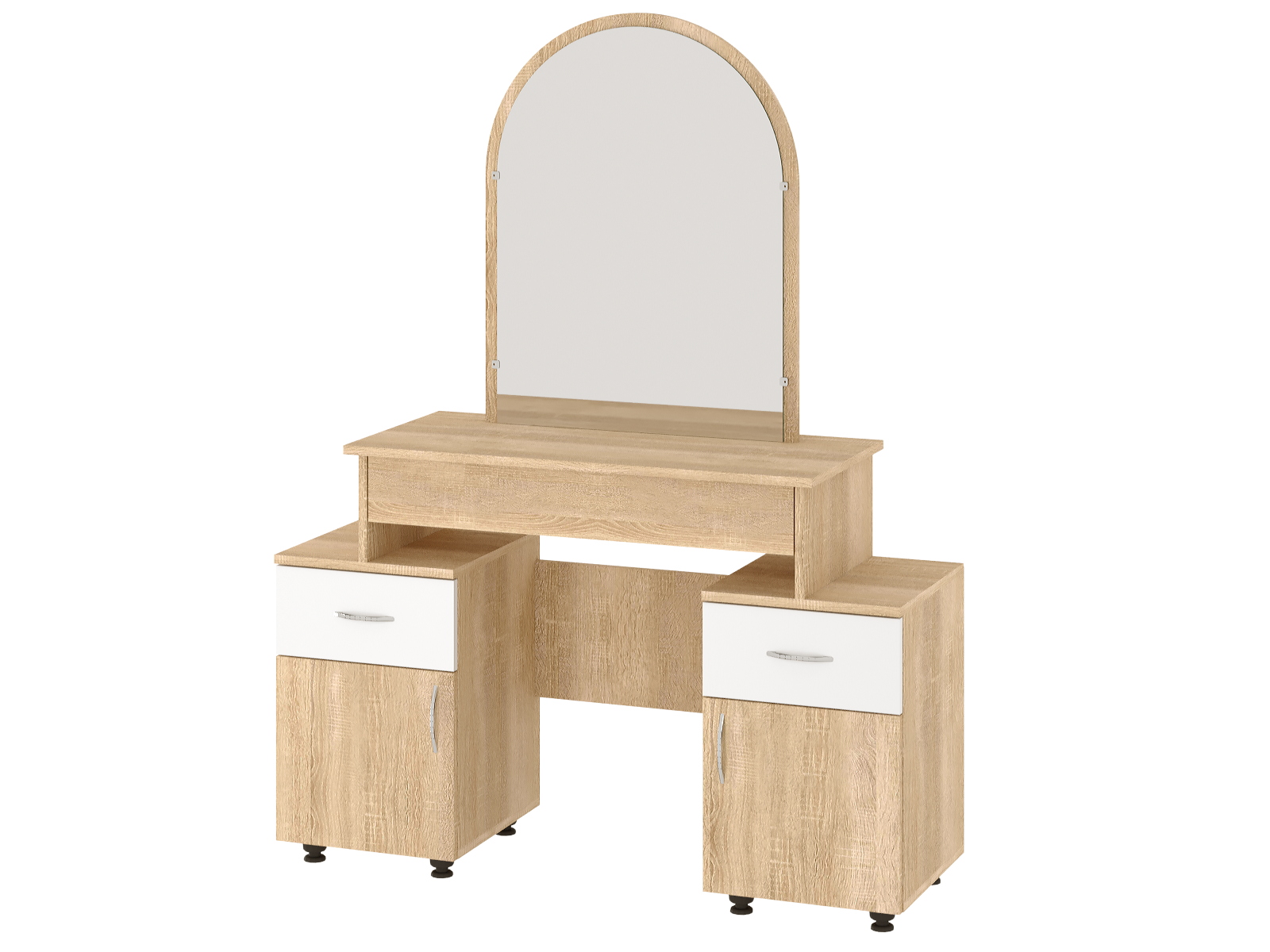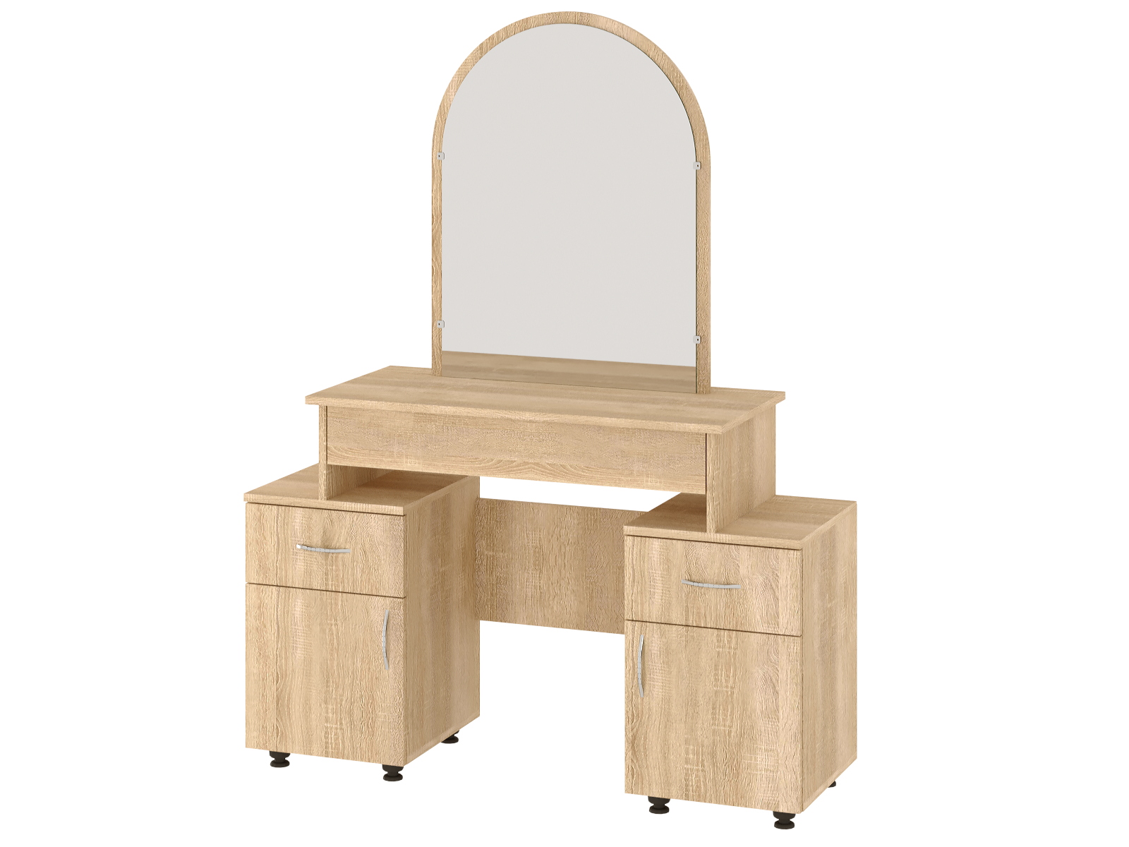 Цей трюмо виготовлений з високоякісного ДСП (деревостружкова плита) товщиною 16 мм, що гарантує його міцність і довговічність. Кромка оброблена ПВХ товщиною 0.45 мм, що додає стійкості і естетичного вигляду.