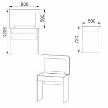 Ширина трюмо становить 800 міліметрів, а глибина - 500 міліметрів. Ці розміри дозволяють розмістити різні предмети і речі, такі як одяг, книги, документи, і зберігати їх організовано і доступно.