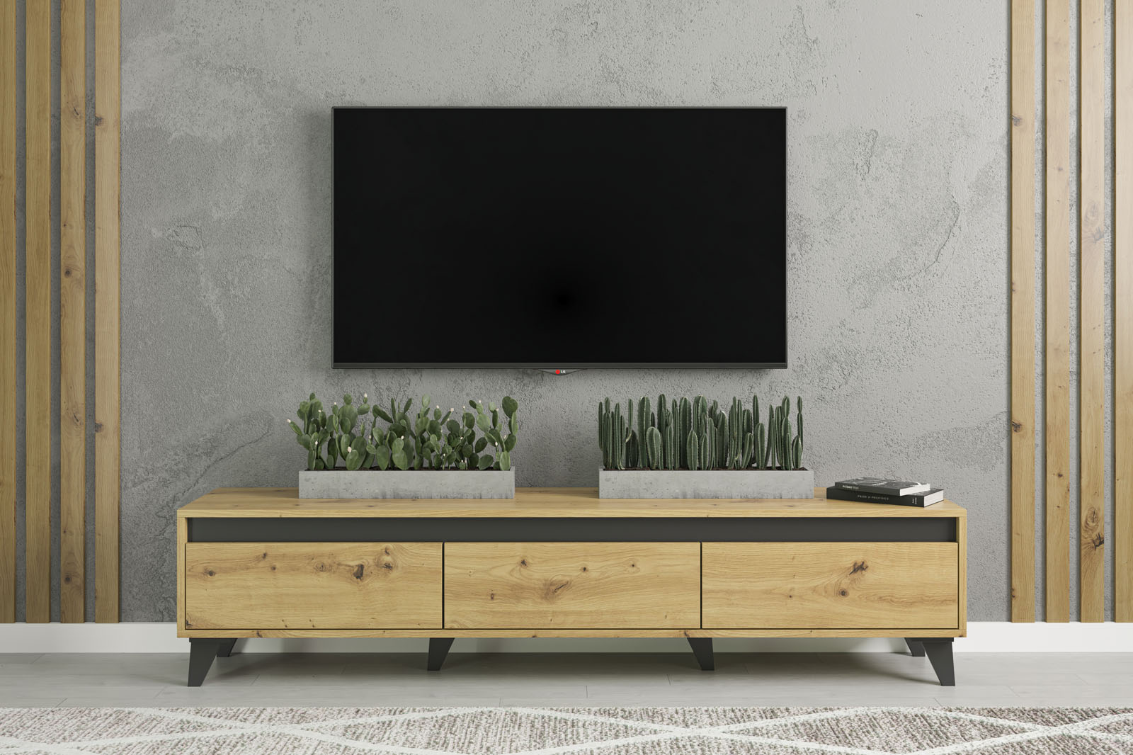 Корпус меблів виготовлений із високоякісного ДСП у дизайні дуб артизан, що надає їм натурального вигляду та довговічності. Фасади виконані з ДСП в кольорах дуб артизан та антрацит, створюючи стильний та сучасний вид меблів.
