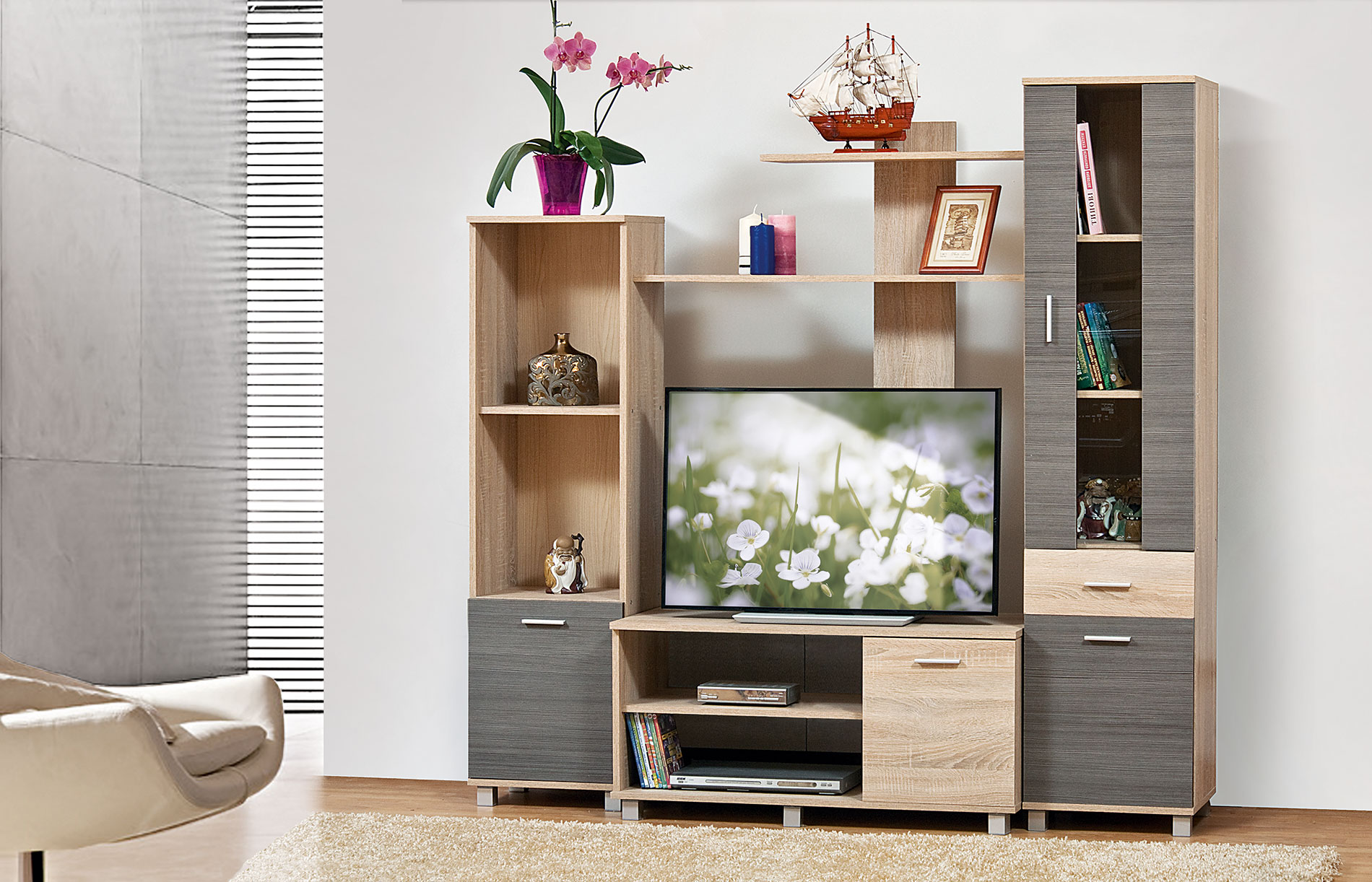 Ніша під ТВ розміром 980*810*424 мм ідеально підходить для розміщення телевізора та інших мультимедійних пристроїв, забезпечуючи комфортний перегляд ваших улюблених програм.