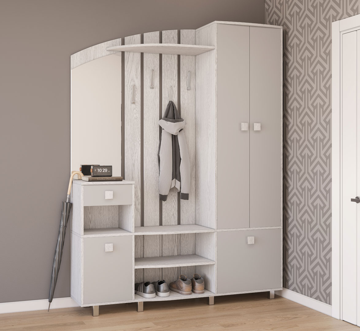 Корпус виготовлений із артвуду світлого кольору (ДСП), що надає шафі елегантного вигляду. Фасади виконані в попелястому кольорі (ДСП), який надає шафі легкості та невимушеності.