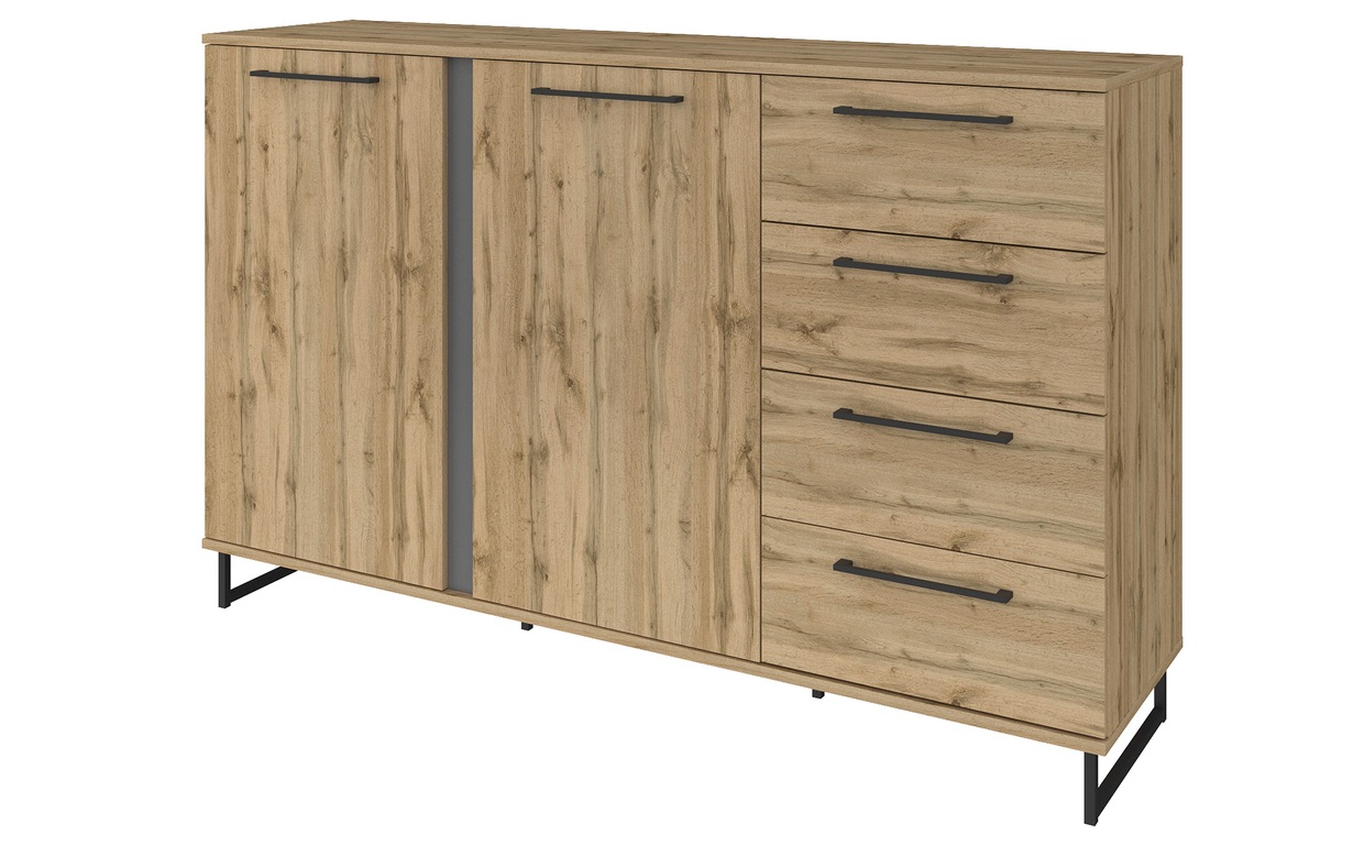 Фенікс Комод 2д 4ш Сінді-ідеальне рішення для тих, хто шукає стильне і практичне рішення для зберігання в своєму інтер'єрі. Цей комод не тільки має вишуканий дизайн, але також пропонує безліч унікальних переваг і достоїнств, які зроблять його невід'ємною частиною вашого будинку.