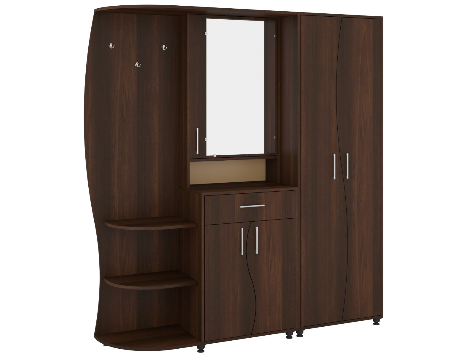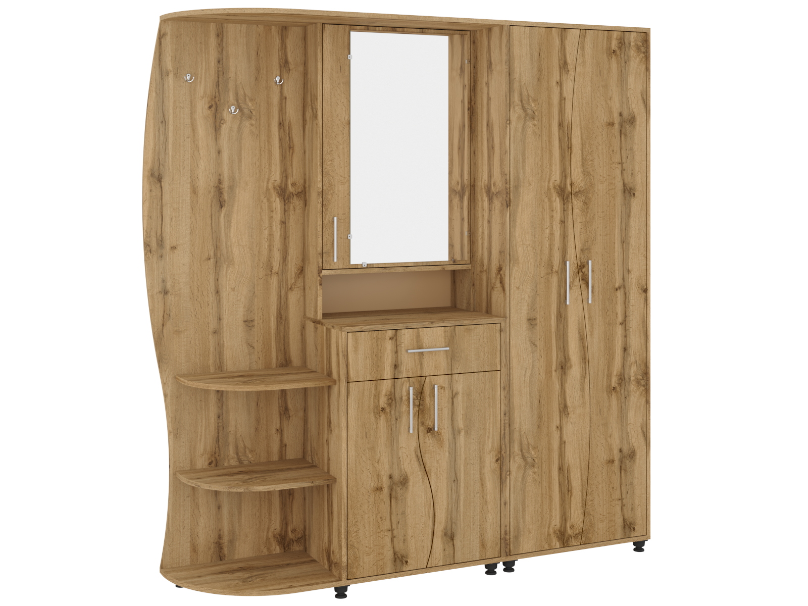 Ця передпокій Грація - ідеальний вибір для організації вхідного приміщення вашого будинку або квартири. З її допомогою ви зможете зберігати верхній одяг, взуття та аксесуари в організованому і зручному порядку, забезпечуючи при цьому відмінний зовнішній вигляд і комфорт для вас і вашої родини. Ось детальний опис цього передпокою: