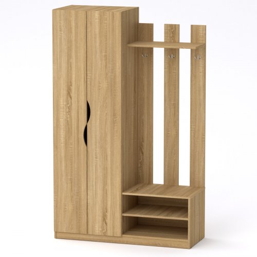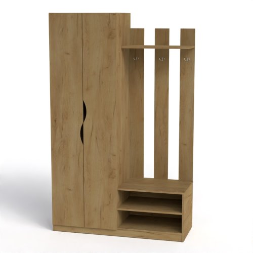 Завдяки функціональному наповненню, ця передпокій допоможе вам організувати вашу одяг і аксесуари так, як вам зручно. Вона включає в себе шафи для одягу, полиці для взуття, висувні ящики для дрібниць і Вішалки для пальто і суконь.