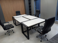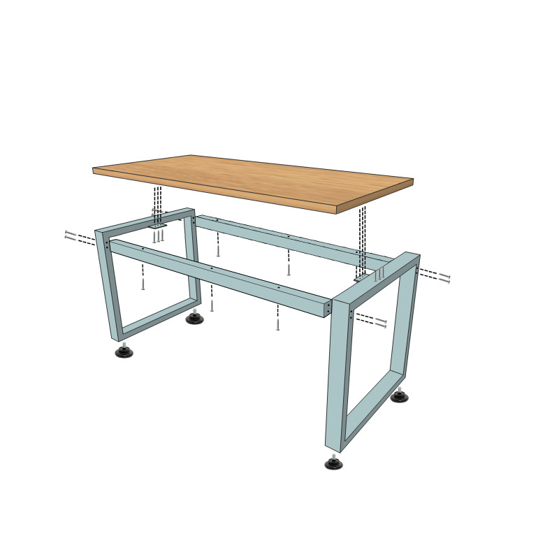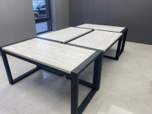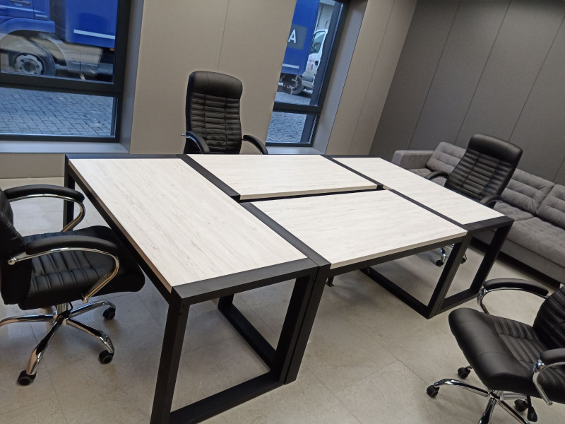 Конструкція столу включає труби різних розмірів: 80х40 мм і 60х60 мм, що забезпечує міцність і стійкість всієї конструкції. Стільниця виконана з високоякісної ДСП товщиною 32 мм, забезпечуючи міцність і довговічність.