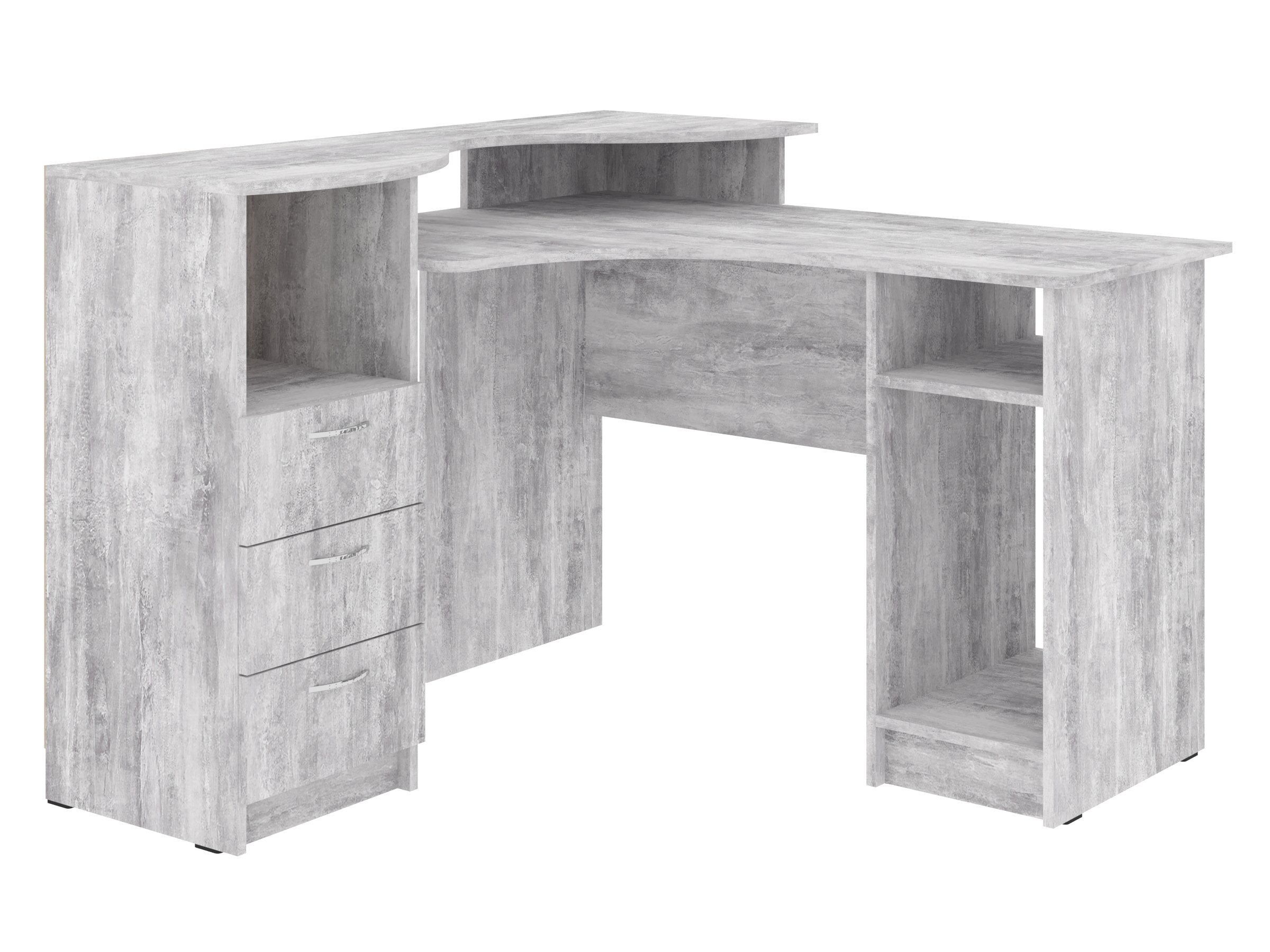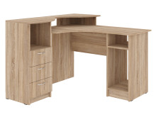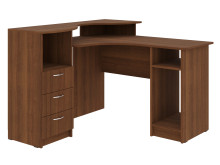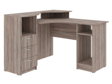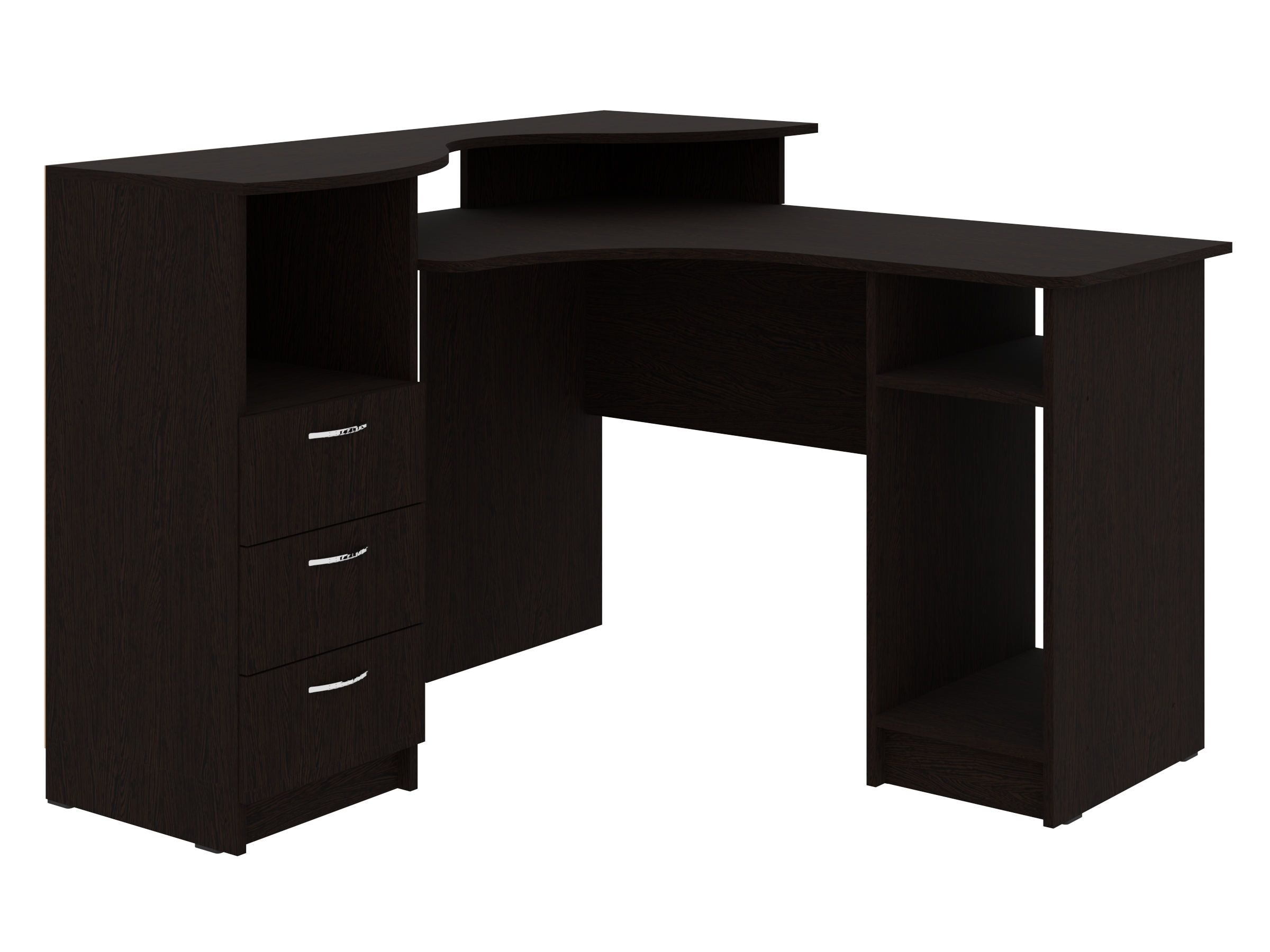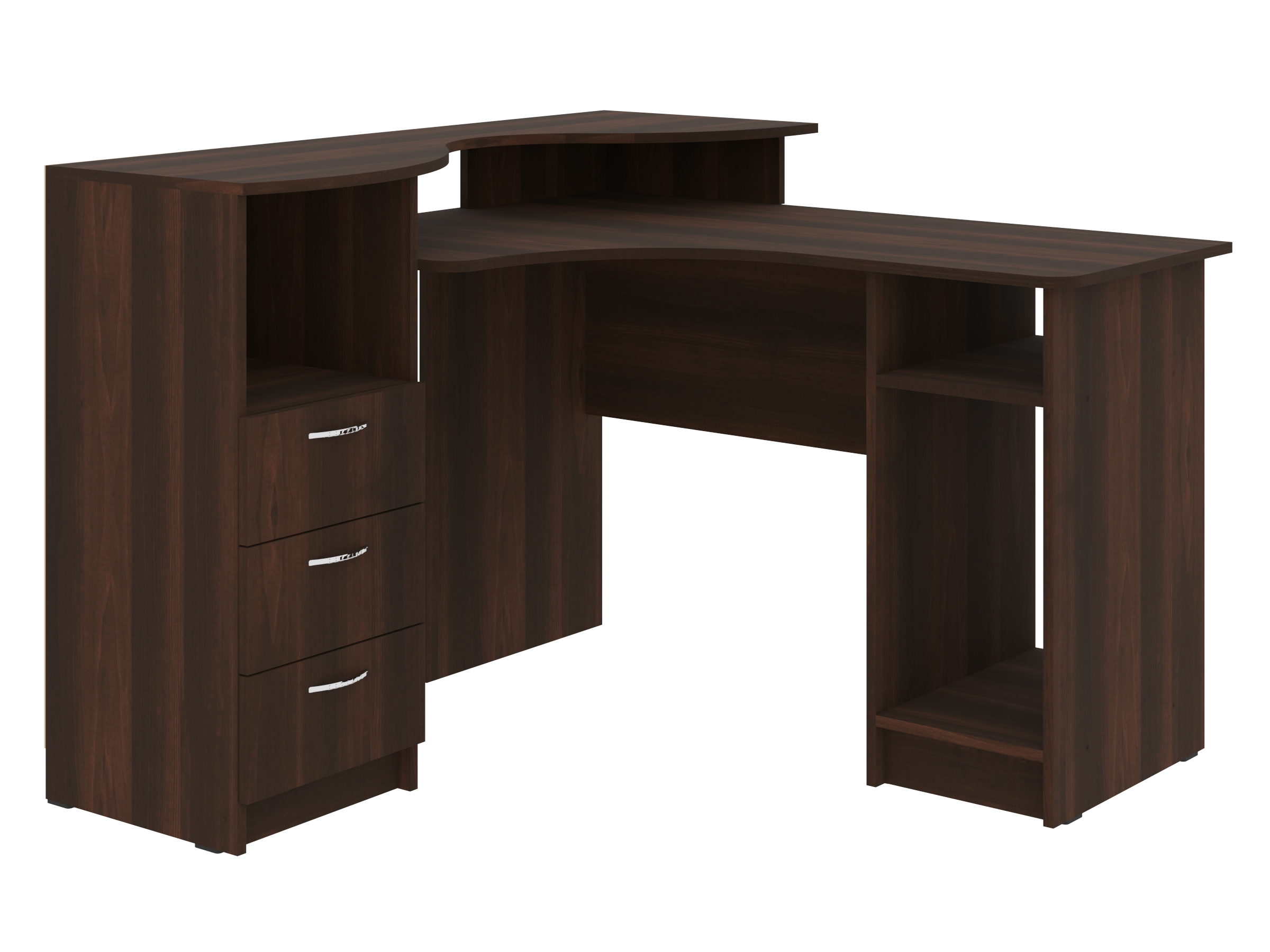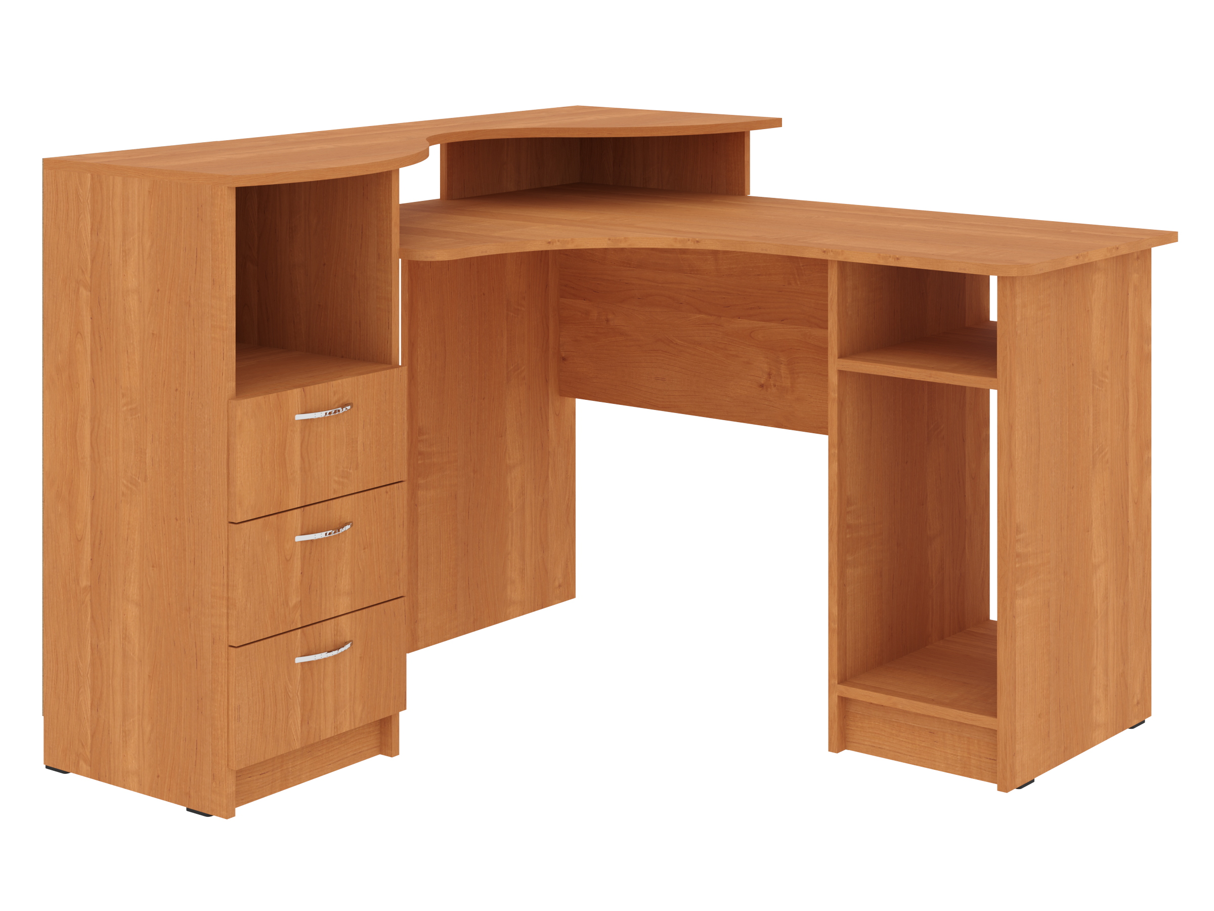 Комп'ютерний стіл має продуману конструкцію з різними рівнями стільниць, нішу для системного блоку, а також три висувних ящика на лівій стороні і нішу для оргтехніки зверху. Це дозволяє ефективно організувати простір і зробити робоче місце більш комфортним.