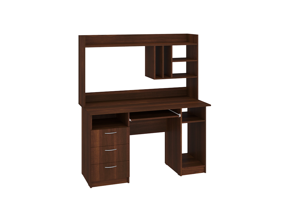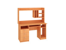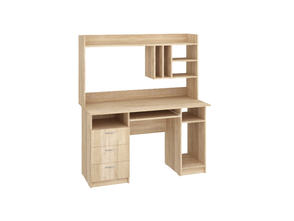 Стільниця цього комп'ютерного столу поділена на зони, що полегшує організацію вашого робочого простору. На правій стороні є три висувних ящика для зберігання різних робочих матеріалів. На верхній частині столу розташована полиця для оргтехніки, яка забезпечує зручний доступ до неї. Є також окрема ніша для системного блоку, що забезпечує вентиляцію і захист обладнання.