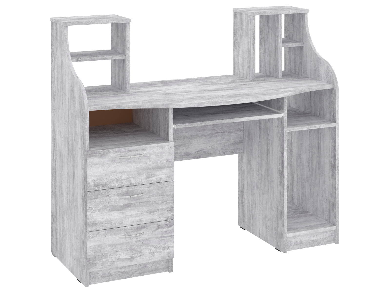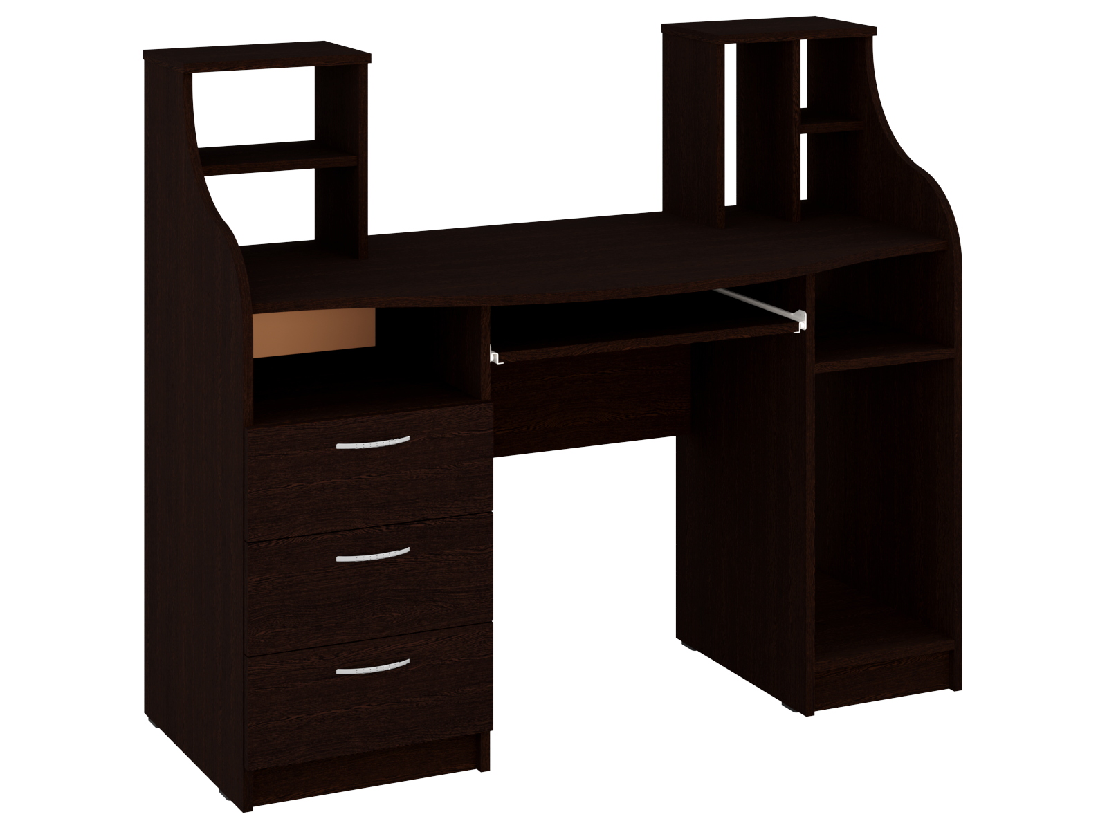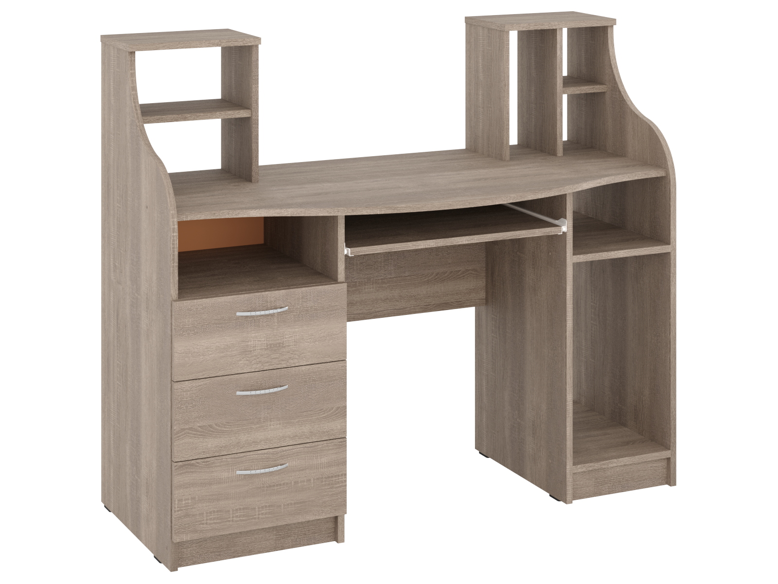 Комп'ютерний стіл "Одіссей" - це стильна і функціональна меблі для вашого робочого простору. Він виготовлений з високоякісного ламінованого ДСП, що гарантує міцність і довговічність. Матеріал фасаду також ламіноване ДСП товщиною 16 мм, яке відрізняється стійкістю до механічних пошкоджень і зносу.