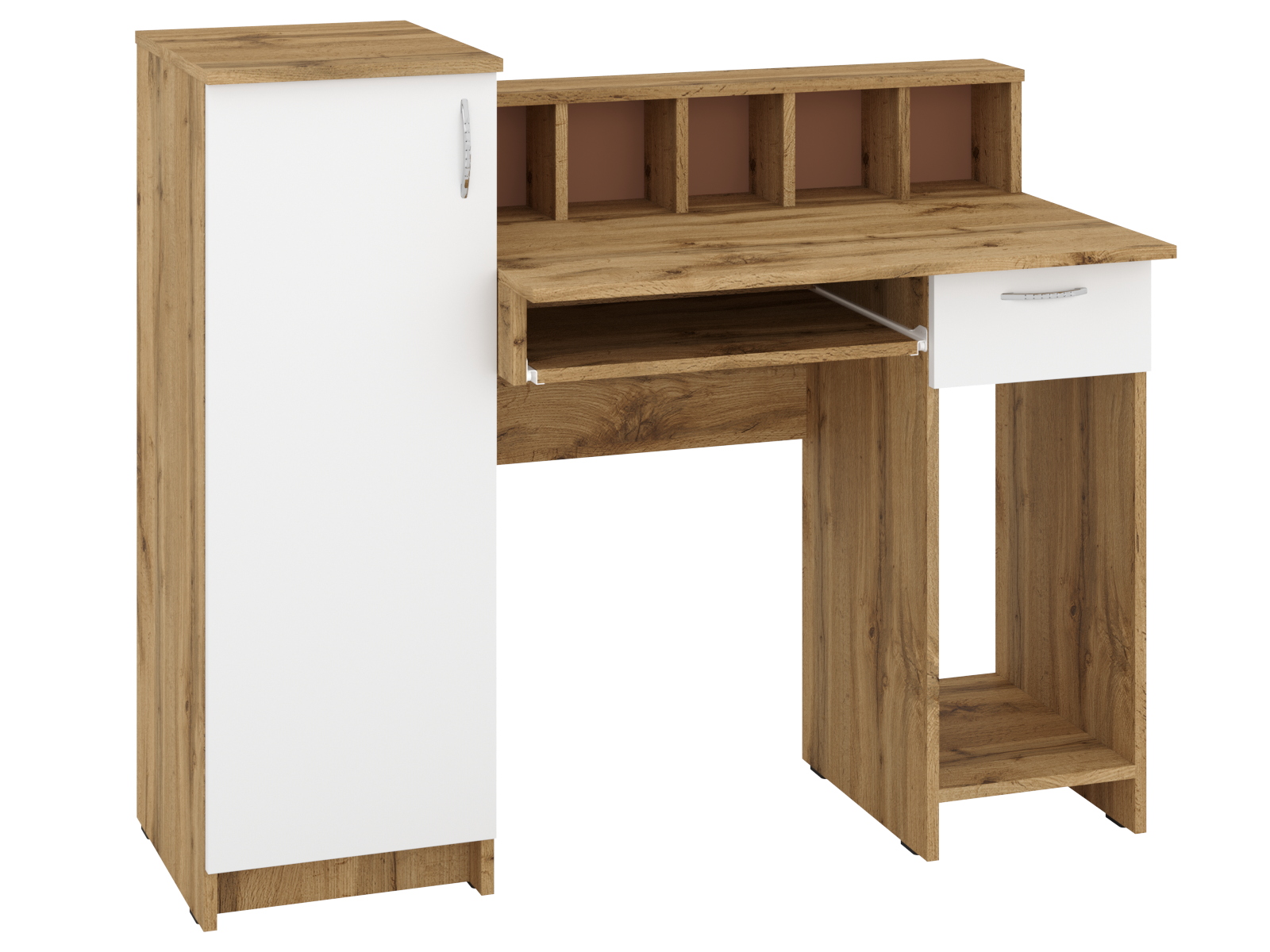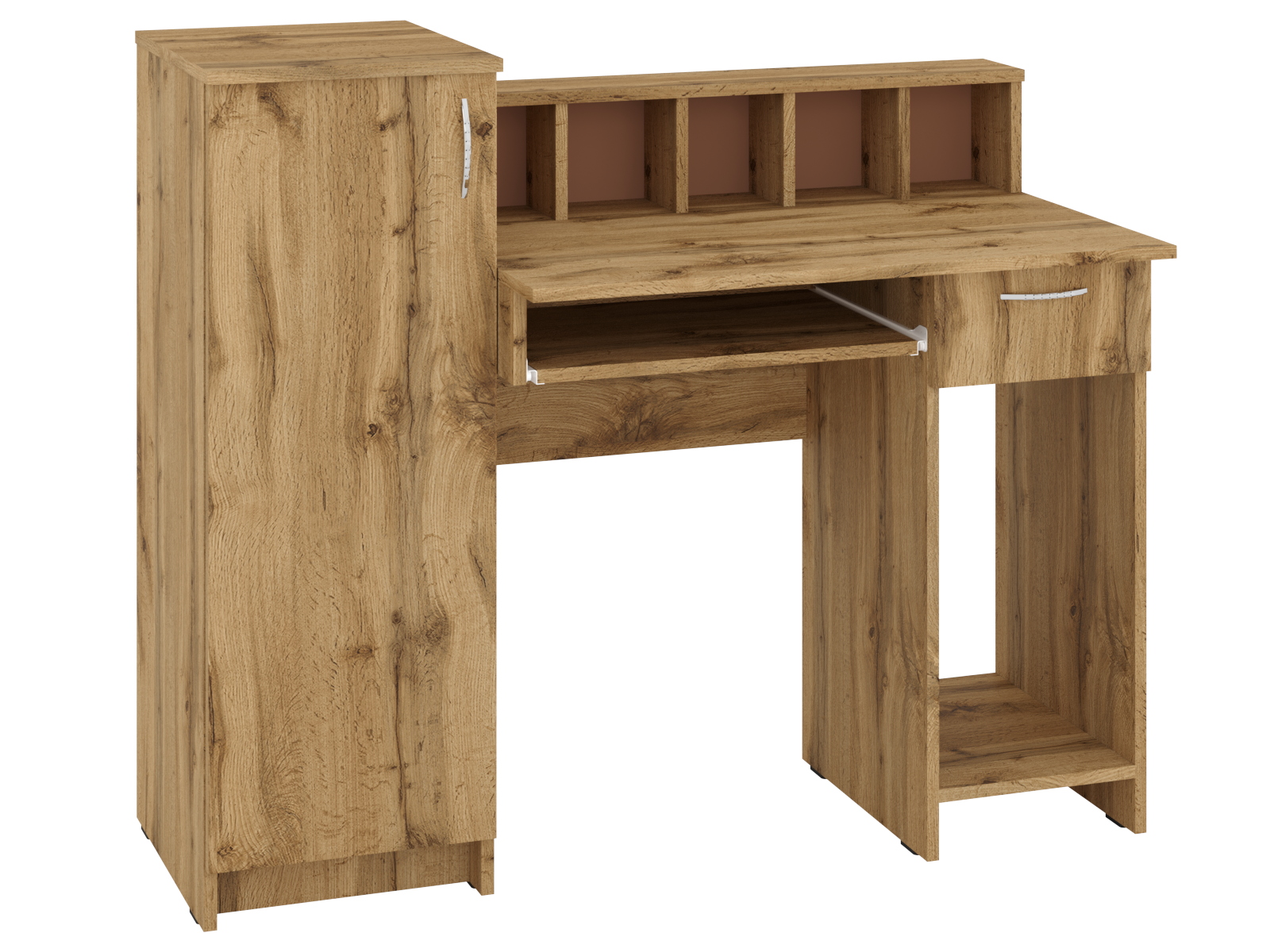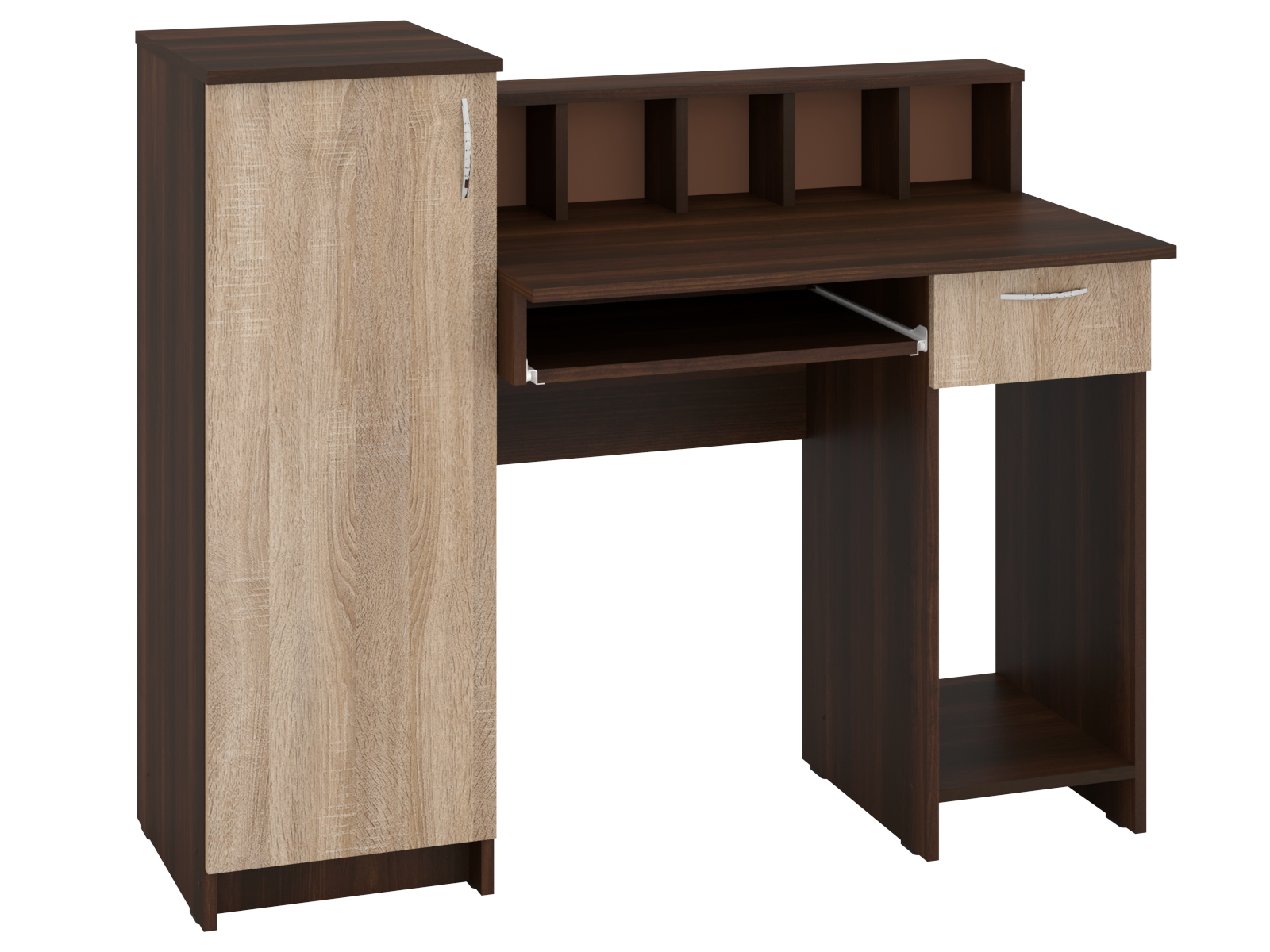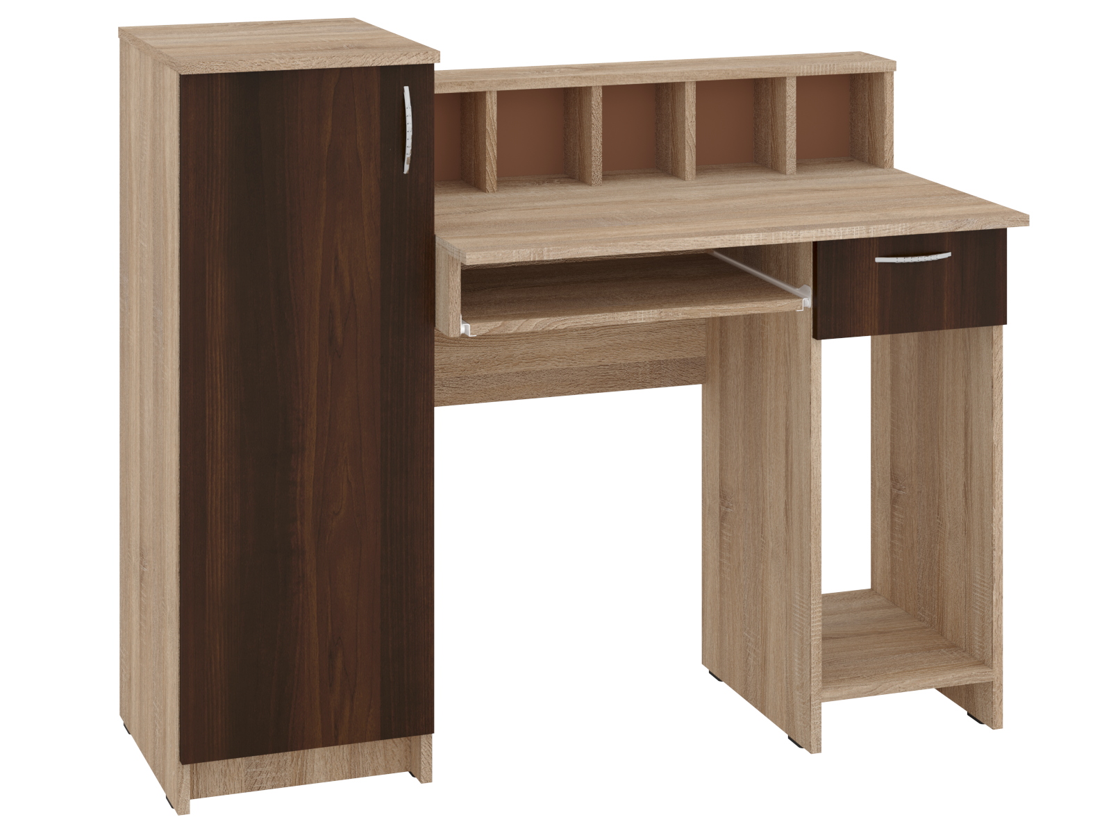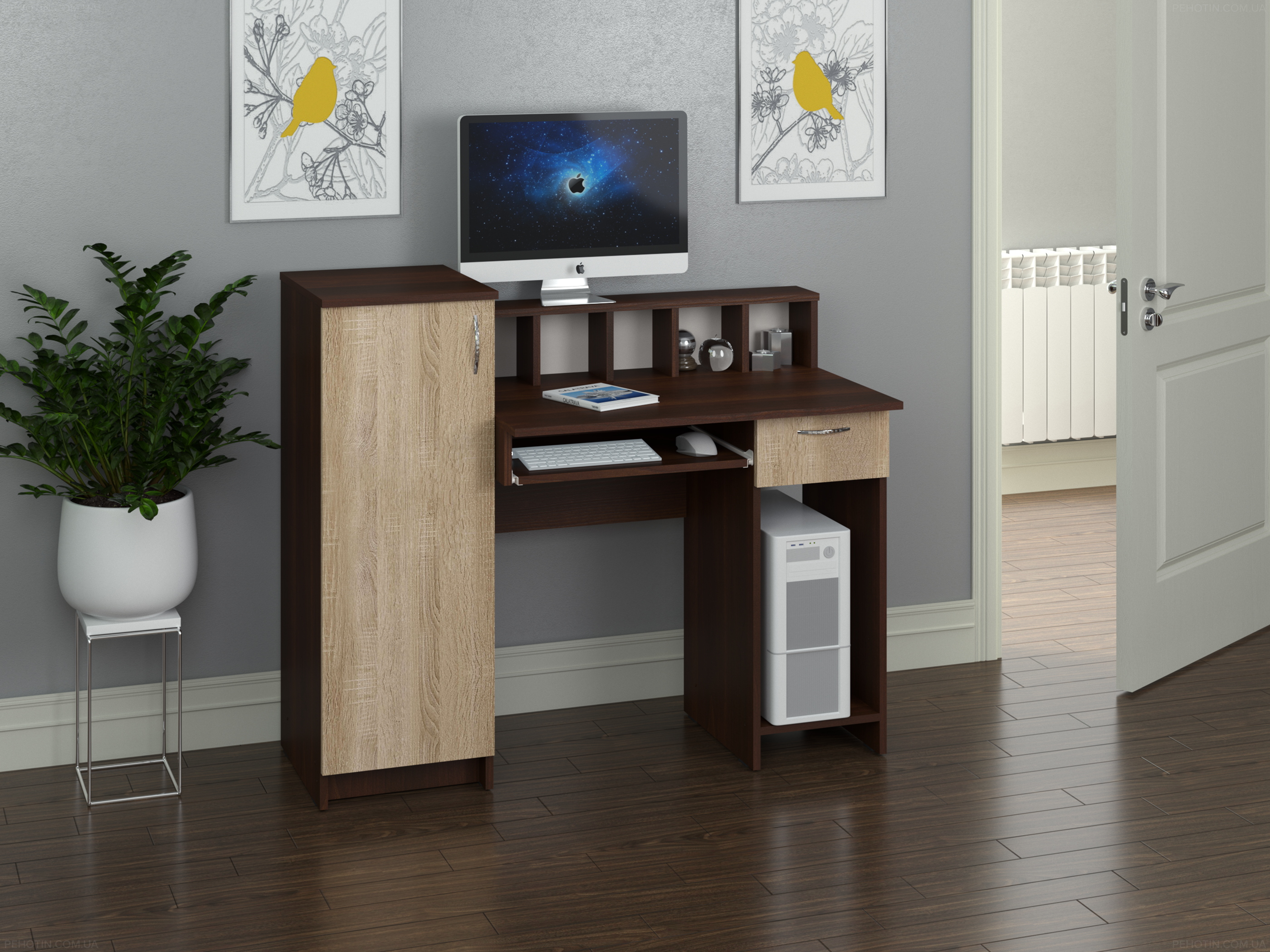 Спеціально розроблена конструкція столу робить його надзвичайно зручним у використанні. На стільниці є достатньо місця для розміщення різних робочих матеріалів. Три висувних ящика дозволять вам організовано зберігати документи і різноманітні принади. Також передбачена полиця для оргтехніки, яка забезпечує зручний доступ до неї. Окрема ніша для системного блоку забезпечує його вентиляцію і захист.