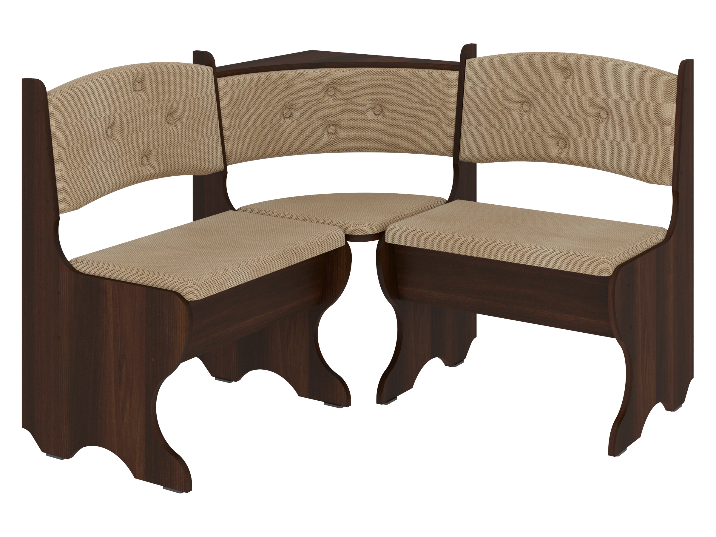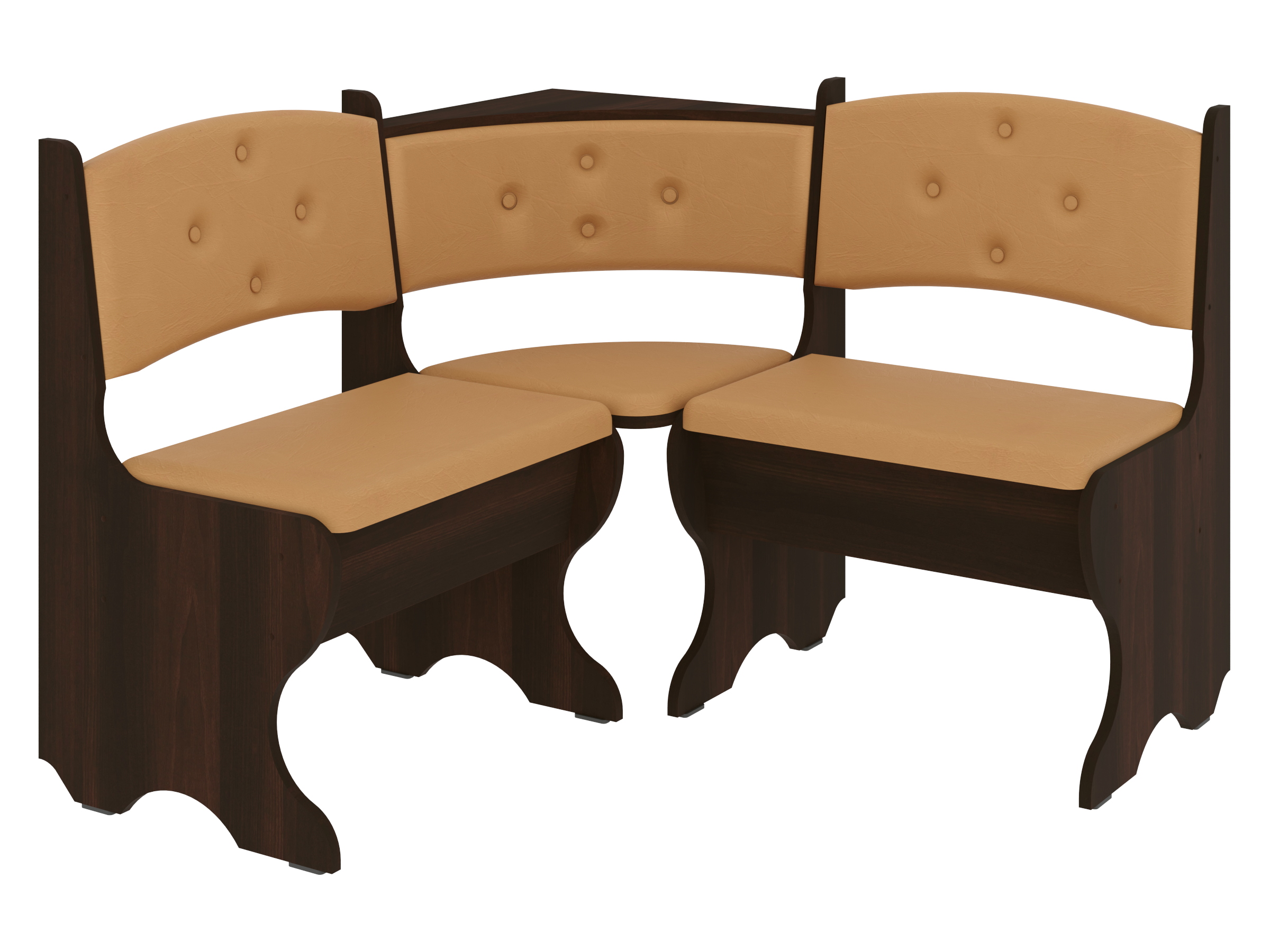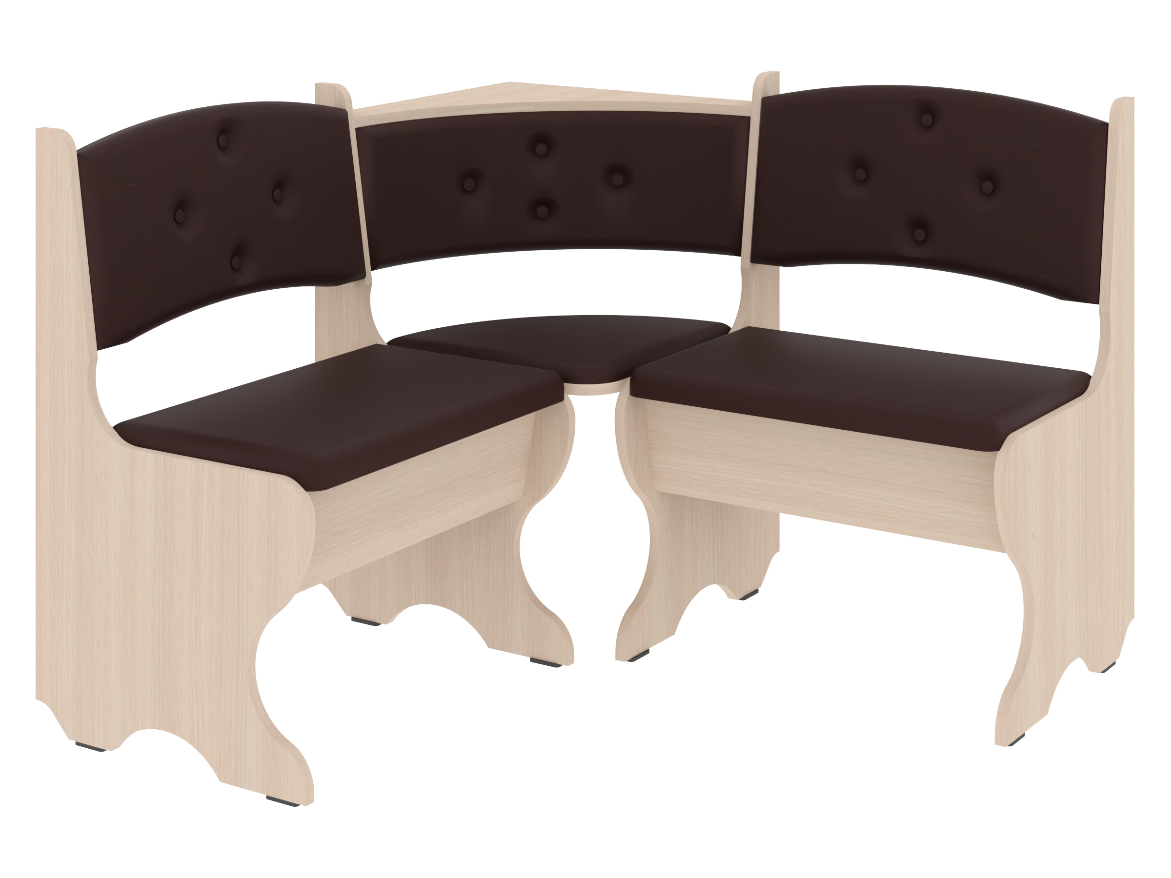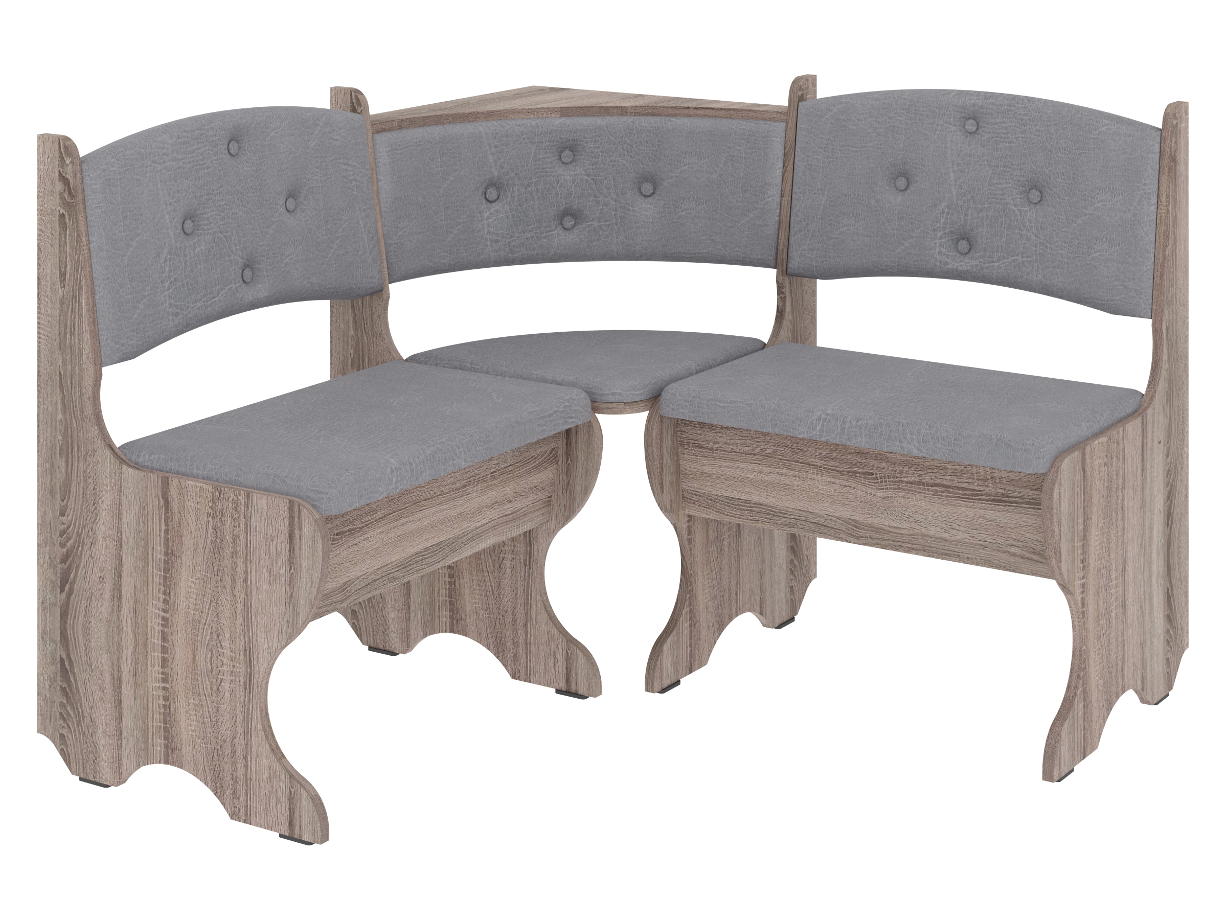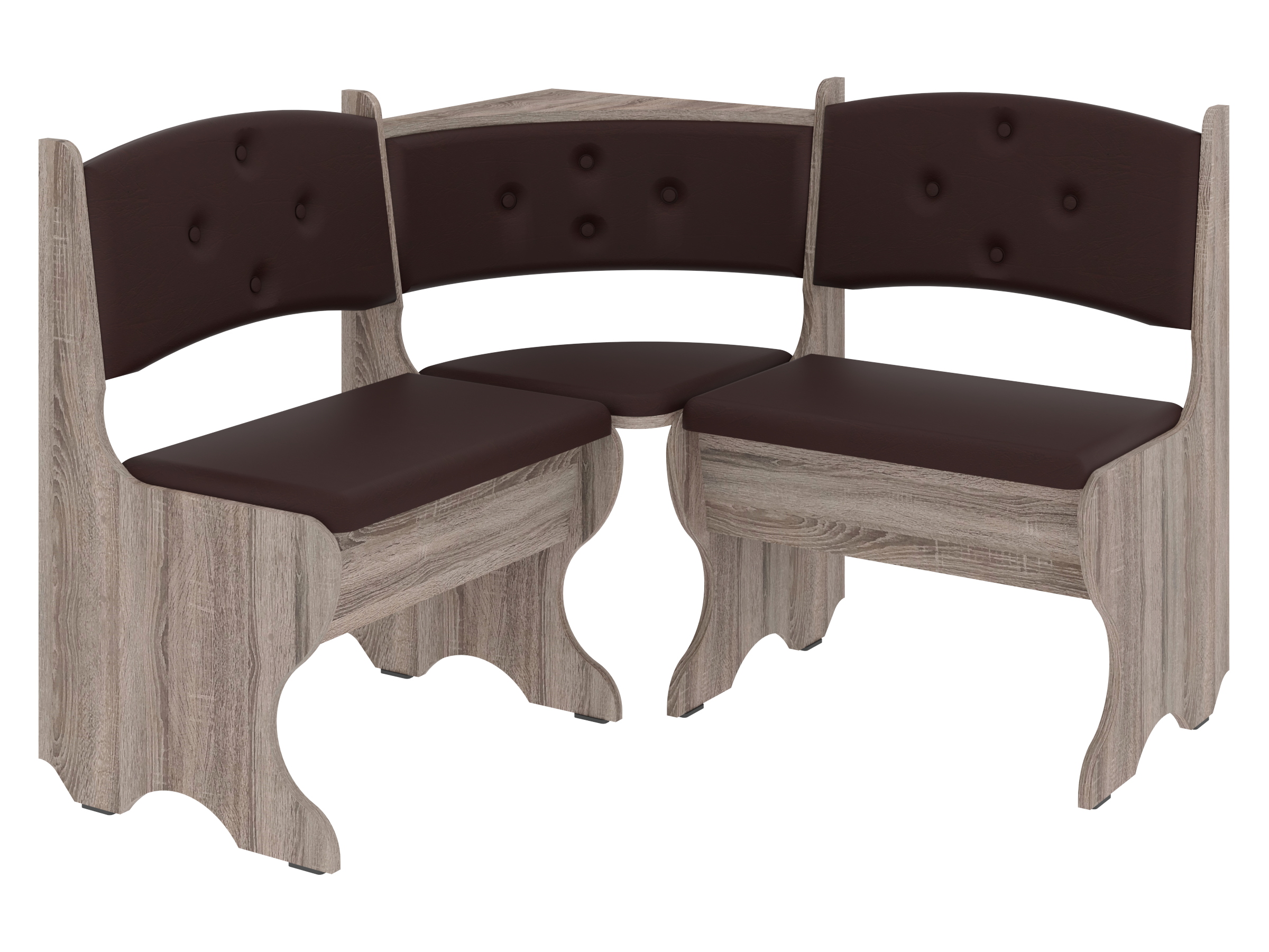 Куточок виготовлений з високоякісних матеріалів. Основа виготовлена з ДСП, яка є стійкою до вологості і механічних пошкоджень. Оббивка включає штучну шкіру і тканину, що надає меблям стильний вигляд і забезпечує комфорт при сидінні. Ця комбінація матеріалів робить куточок довговічним і практичним.