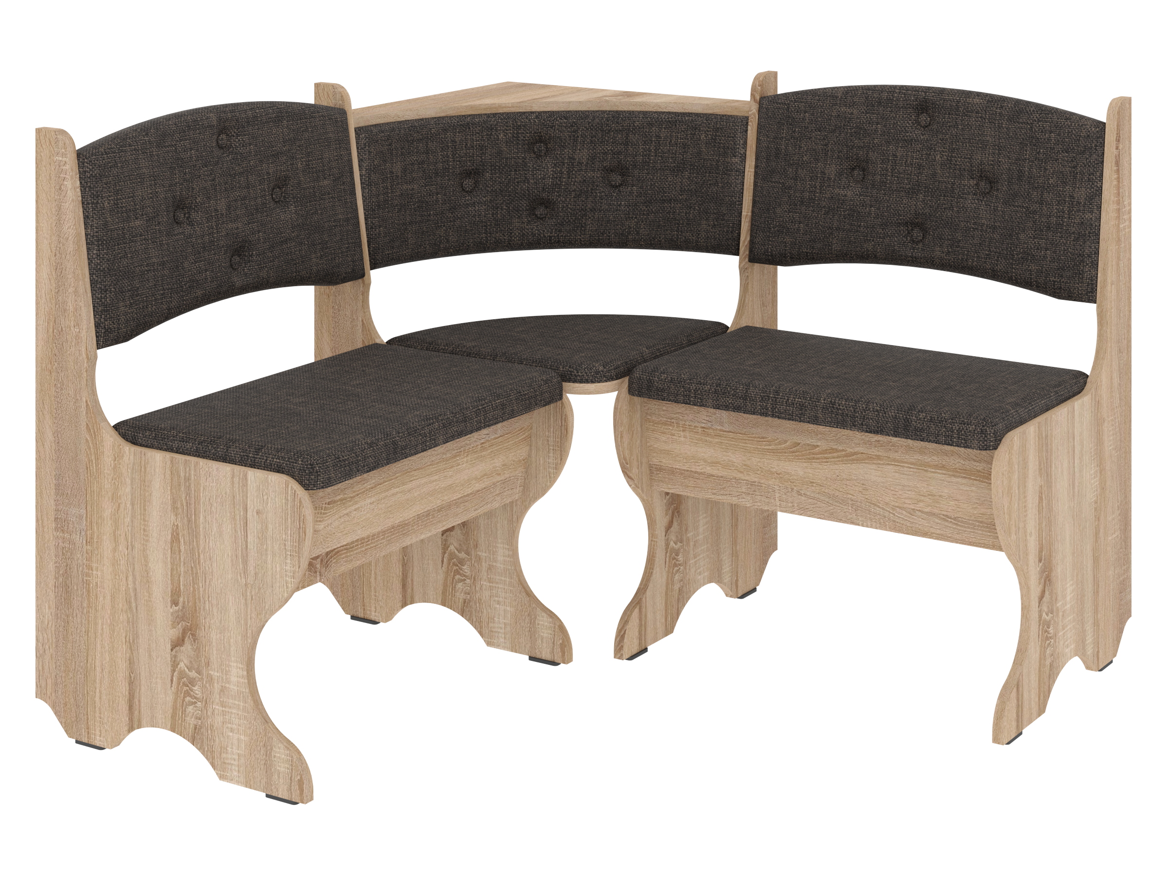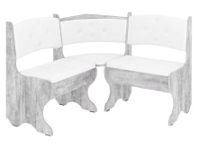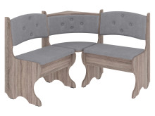 Куточок має ящики для зберігання, що дозволяє організовано і зручно зберігати кухонні прилади і дрібниці. Підвищені ніжки забезпечують легкий доступ до підлоги під куточком і надають простору легкість. Відсутність підлокітників робить меблі більш універсальною і зручною для сидіння.