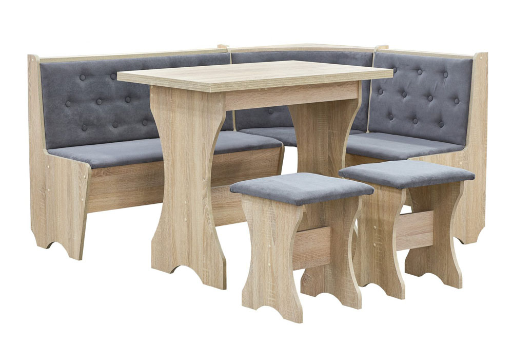 Куточок кухонний ДСП з табуретками і столом – ідеальне рішення для облаштування кухонного простору. Цей комплект від Меблі Сервіс є прекрасним поєднанням функціональності, зручності і стилю. Основним матеріалом, використовуваним у виробництві куточка, є ДСП високої якості. Це гарантує його міцність і довговічність, що робить його ідеальним вибором для повсякденного використання.