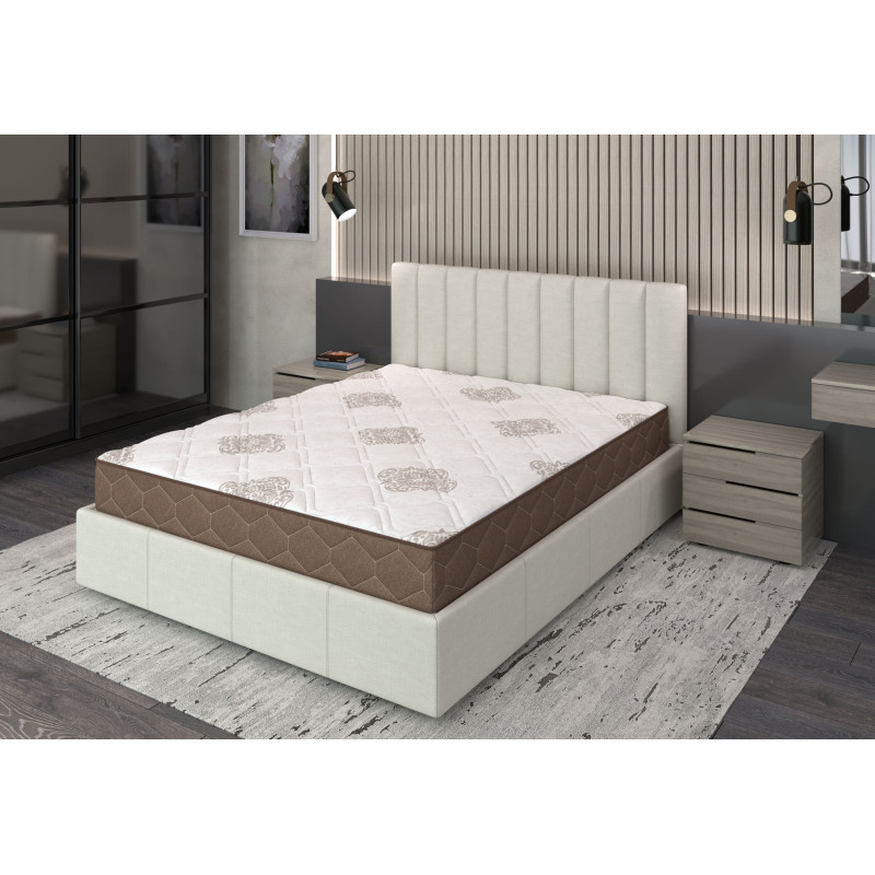Чохол матраца виготовлений із стрейч-матеріалу, який має високу стійкість і дозволяє матрацу адаптуватися до вашої анатомії. Єврокаркас з рамою надає стабільності та довговічності конструкції матраца.