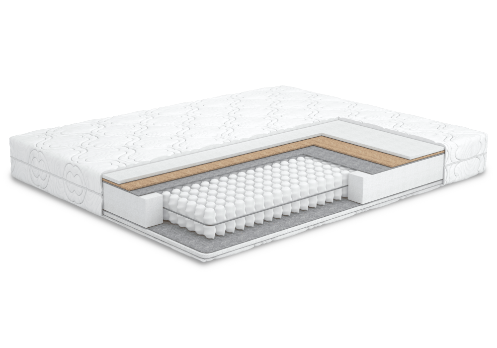 - Натуральний кокосовий наповнювач: Наявність кокосової койри у складі матраца забезпечує оптимальну вентиляцію та захист від неприємних запахів та бактерій.