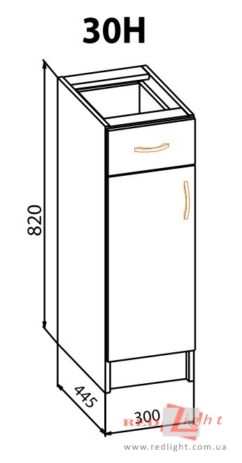 Виготовлена з якісного МДФ, тумба забезпечує міцність та довговічність. Її компактні розміри – ширина 300 мм, висота 820 мм та глибина 445 мм – ідеально підходять для невеликих приміщень або для використання як додаткові меблі.