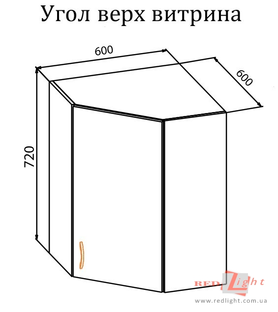 Виготовлений із якісного МДФ, кут забезпечує міцність та довговічність. Його розміри - ширина 600 мм, висота 720 мм і глибина 600 мм - роблять його ідеальним для використання як кутова вітрина у вашій кухні або вітальні.