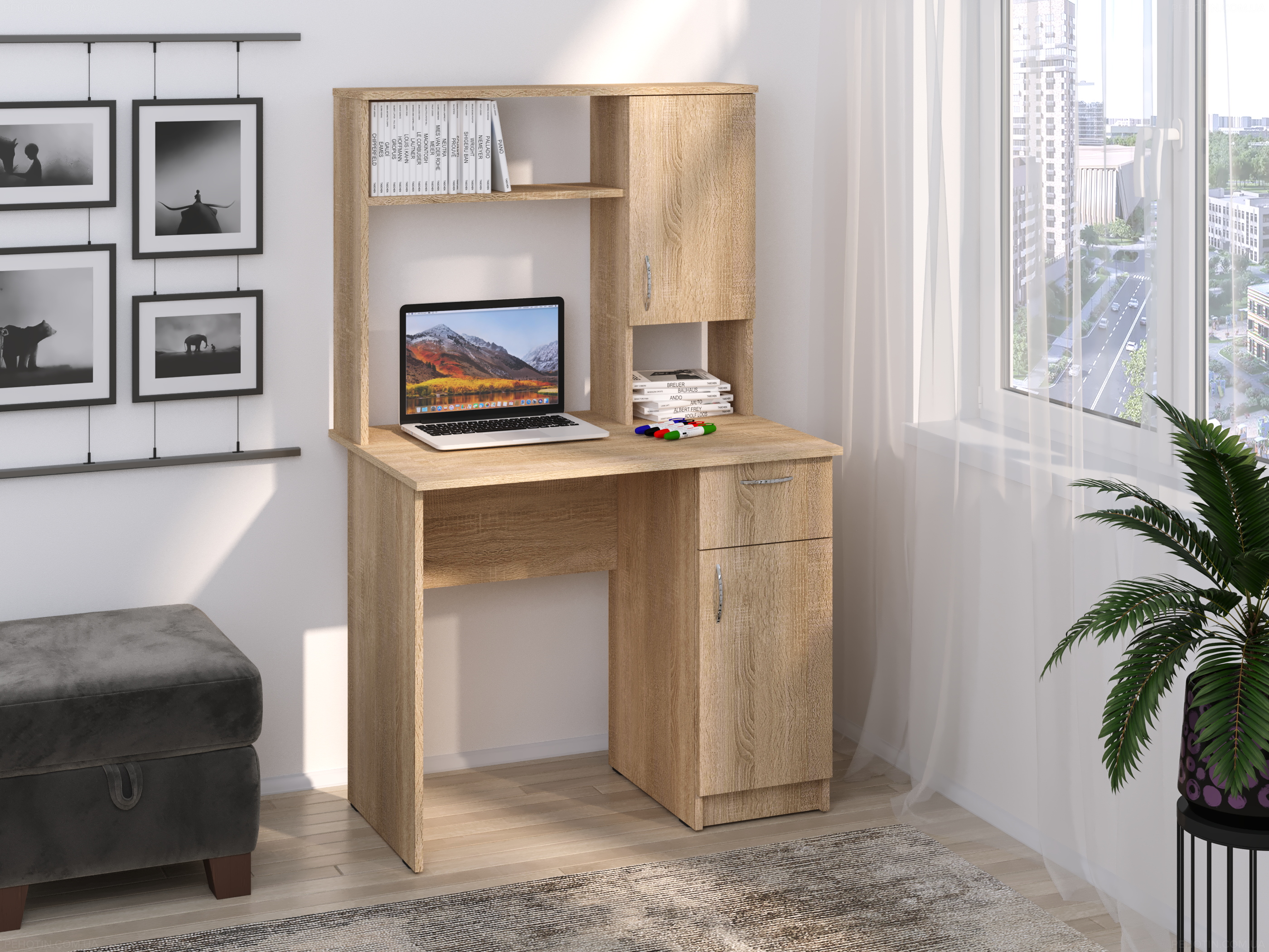 Стіл Еврика-це функціональний і стильний письмовий стіл, який ідеально підходить для створення комфортного робочого або навчального простору в будь-якому інтер'єрі. Він володіє вражаючими характеристиками і відмінним дизайном.
