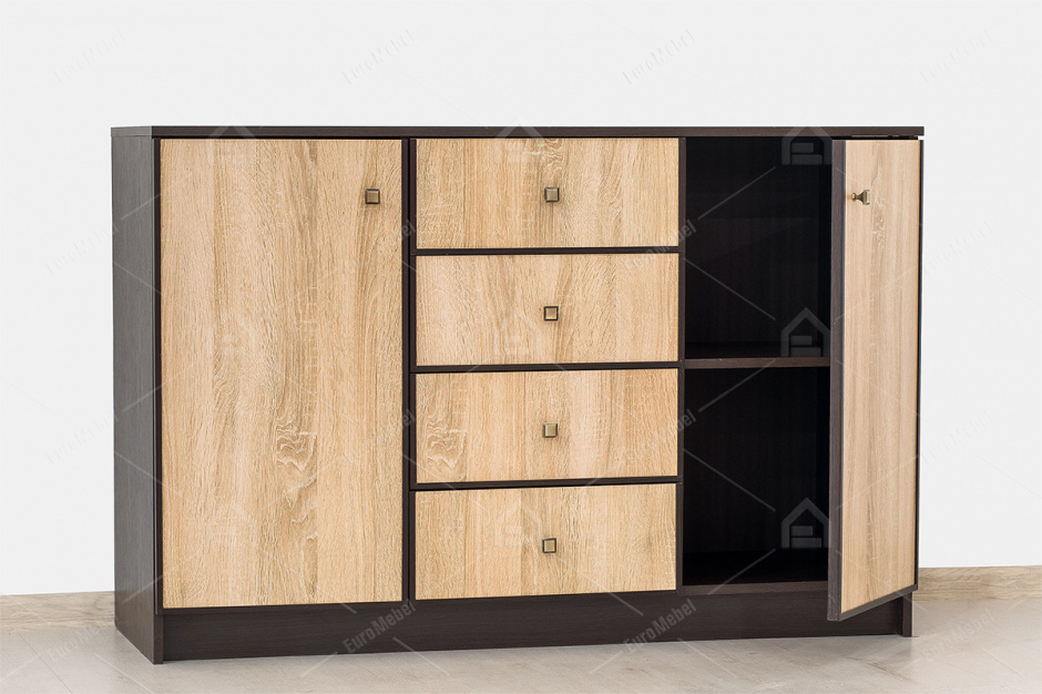 Завдяки своїй універсальності і стильному зовнішньому вигляду, він підходить для будь-якого стилю інтер'єру, будь то класика або сучасність. Комод 2д4ш Фантазія також відрізняється своєю функціональністю. Його чотири широких ящика і двоє дверцят дозволяють Вам зручно зберігати речі різних розмірів. Великий розмір ящиків і дверцят допоможуть вам організувати простір в кімнаті так, щоб кожна річ була на своєму місці і завжди була під рукою.
