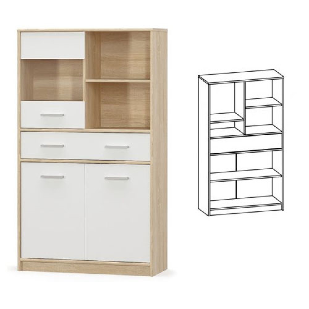 Вона виготовлена з високоякісних матеріалів, що гарантує її довговічність і надійність. Завдяки своєму компактному розміру, вітрина легко впишеться в будь-яке приміщення, не займаючи багато місця. Основне призначення вітрини-це зберігання і демонстрація предметів інтер'єру та декору. Три просторих скляних полиці дозволяють зручно розмістити книги, вази, фігурки та інші аксесуари. Два закритих ящика і один відділ з дверцятами забезпечують додатковий простір для зберігання.