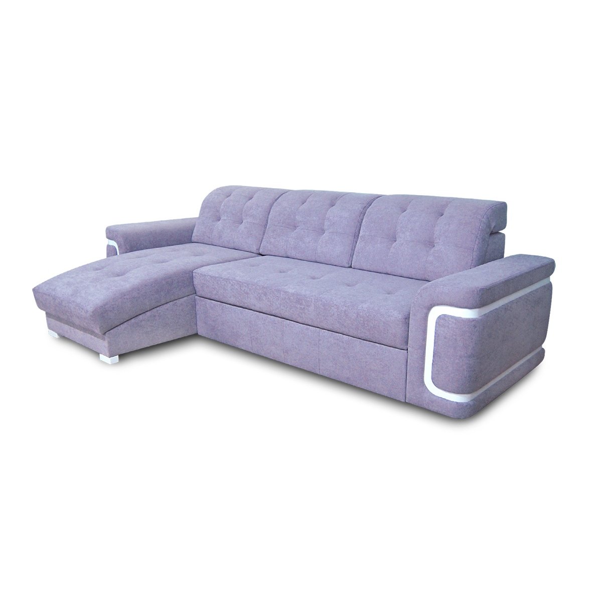 Наповнення дивана складається з ламелей та пінополіуретану, забезпечуючи оптимальну підтримку та комфорт при сидінні та лежанні. Габаритні розміри у зібраному вигляді становлять 3010х1740х900 мм, а у розкладеному вигляді – 3010х2400х900 мм. Розмір спального місця 1950х1450 мм гарантує приємний відпочинок вашим гостям чи родині.