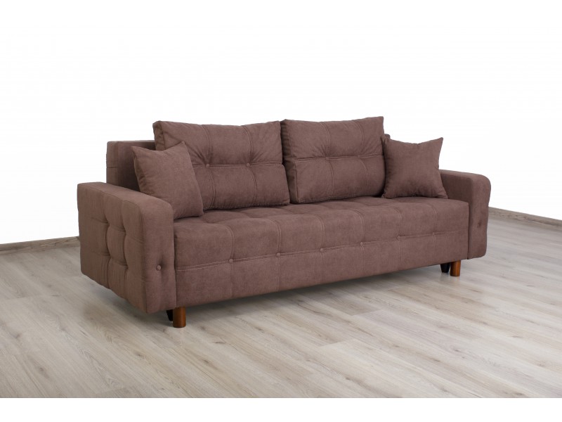 Наповнення виробу ретельно підібрано для забезпечення оптимального комфорту під час використання. Пружинний блок Боннель забезпечує правильну підтримку тіла, рівномірно розподіляючи вагу. Пінополіуретановий шар надає додаткову м'якість та комфорт, а синтепон та подрібнений ППУ забезпечують м'якість та еластичність, що робить сидіння на дивані ще приємнішим.