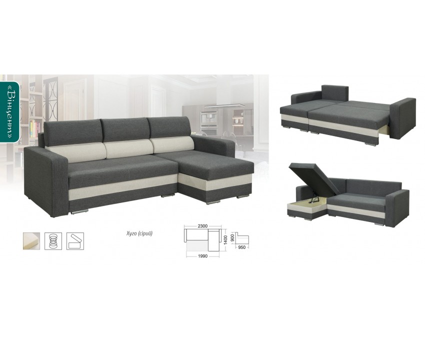 Завдяки сучасному дизайну і акуратною обробці, диван Вінцент додасть шарму і елегантності в вашу вітальню. Кутовий диван Вінцент також володіє високою функціональністю. Його кутова конструкція дозволяє ефективно використовувати простір в кімнаті, а також створює комфортне місце для відпочинку і розваг. Незалежно від того, чи потрібен вам простір для сімейних посиденьок або додаткове спальне місце для гостей, цей диван може легко перетворюватися по вашим потребам. Завдяки своїй унікальності та інноваційним рішенням, кутовий диван Вінцент відрізняється від інших аналогічних виробів.