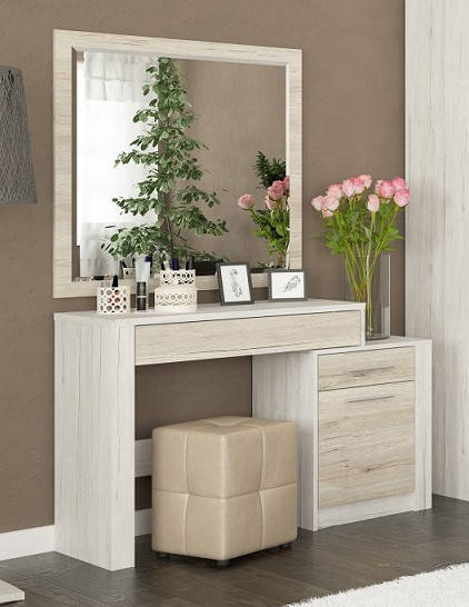 Одним з основних переваг туалетного столика Кім є його простір. Безліч висувних ящиків і відкритих полиць дозволяють зберігати і організовувати вашу косметику, прикраси, парфумерію і всі необхідні аксесуари в зручному і легкодоступному місці. Завдяки цьому, ви завжди зможете швидко знайти потрібні предмети і зробити ранковий ритуал краси ще більш приємним і безтурботним. Іншим важливим достоїнством туалетного столика Кім є його елегантний і сучасний дизайн.