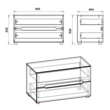 Розміри тумби спеціально розраховані для забезпечення оптимального розташування телевізора і аксесуарів. Висота 526 мм створює зручний кут для комфортного перегляду, а ширина 900 мм і глибина 464 мм дозволяють зручно розмістити різноманітну аудіо - і відеоапаратуру.