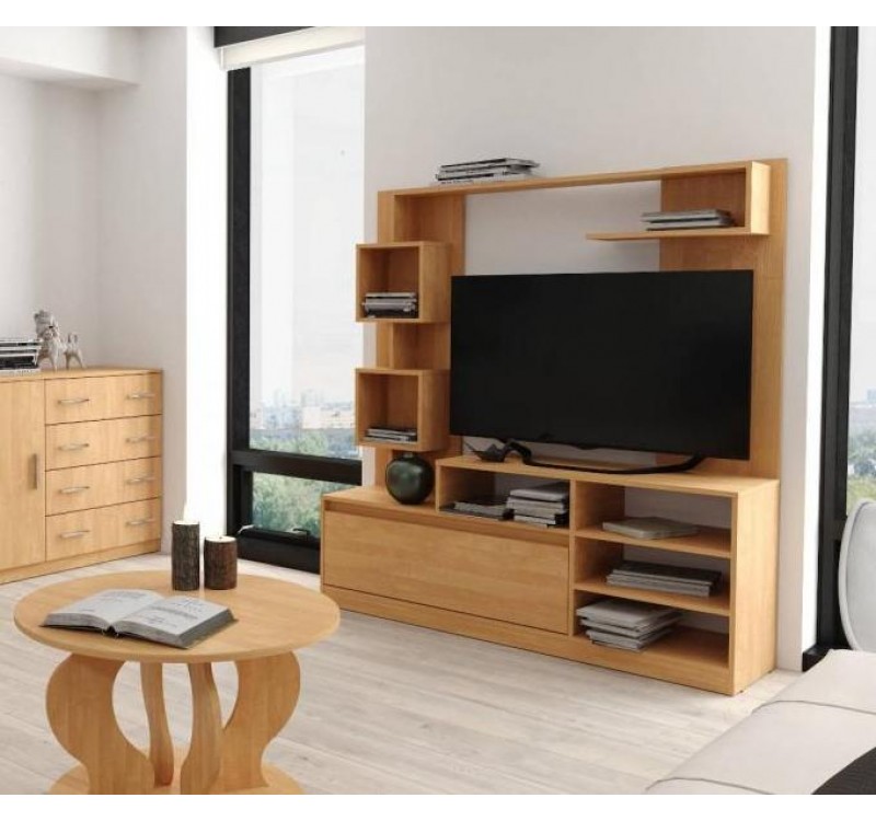 Матеріал: вітальня виготовлена з високоякісного ламінованого ДСП, яке відрізняється міцністю і стійкістю до подряпин і вологості. Воно легко очищається і залишається в ідеальному стані протягом тривалого часу.