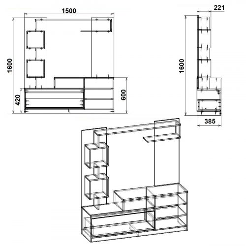 Ширина: 1500 мм. велика ширина вітальні надає достатньо місця для розміщення телевізора, аудіо-відео техніки і декоративних аксесуарів.