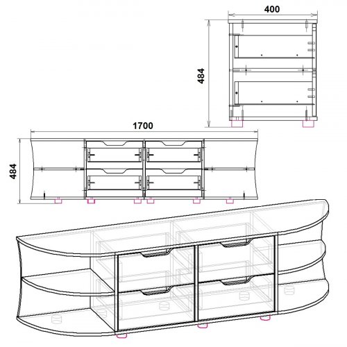 Ширина: 1700 мм.велика ширина тумби надає вам достатньо місця для розміщення телевізора та інших аудіо-відео пристроїв, а також для зберігання різних декоративних елементів і предметів.