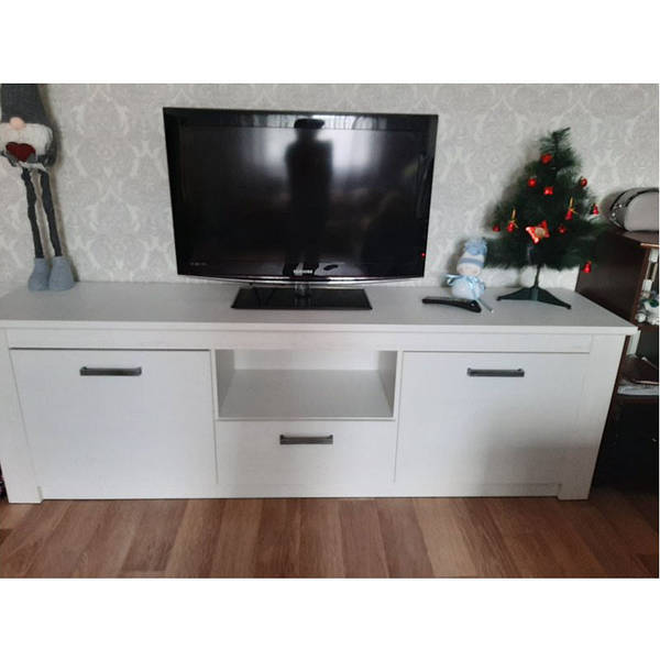 Ширина тумби 1970 мм забезпечує достатній простір для розміщення більшого телевізора та інших пристроїв. Висота 645 мм та глибина 425 мм дозволяють зручно розмістити тумбу та забезпечити комфортну експлуатацію.