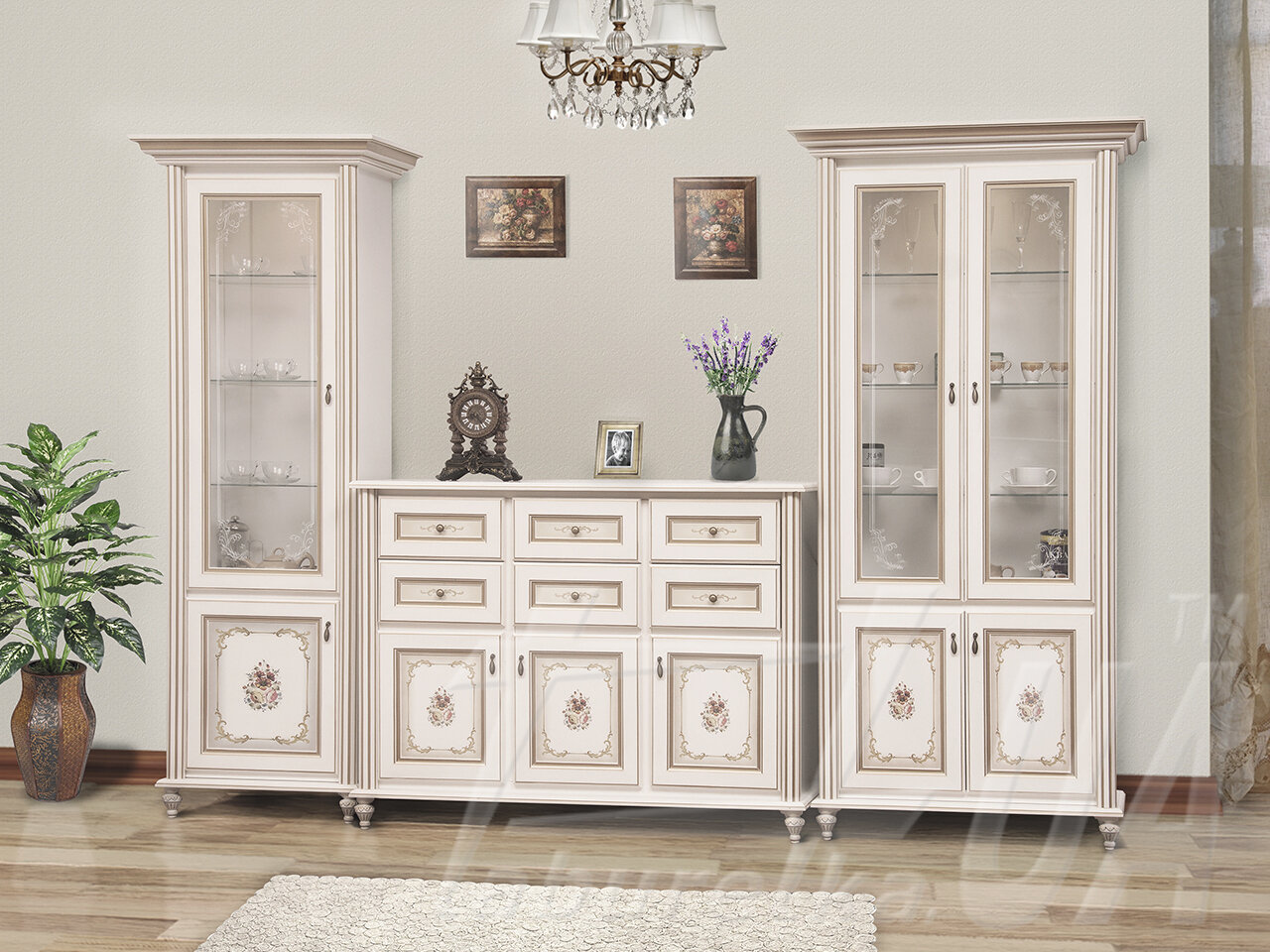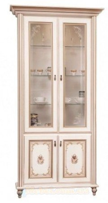 Дизайн вітрини вражає своєю елегантністю та функціональністю. Вона має дві скляні дверцята, що дозволяють ефективно організувати простір і зручно використовувати вміст вітрини. Внутрішнє просторове розташування полиць та відділень дозволяє зберігати різні предмети – від посуду та склянок до книг, декоративних елементів та колекційних речей.